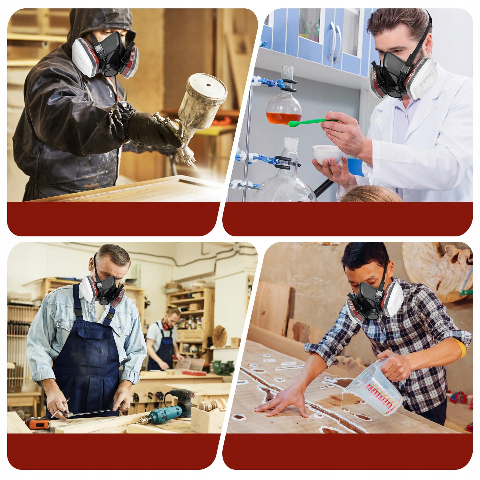Респиратор на половину лица подходит для работы на открытом воздухе, пайки, железной дороги, лаборатории, уборки, строительства, покраски распылением, распиловки, производства, мастерской, пустыни, механической обработки, сборки гипсокартона и других промышленных рабочих мест.