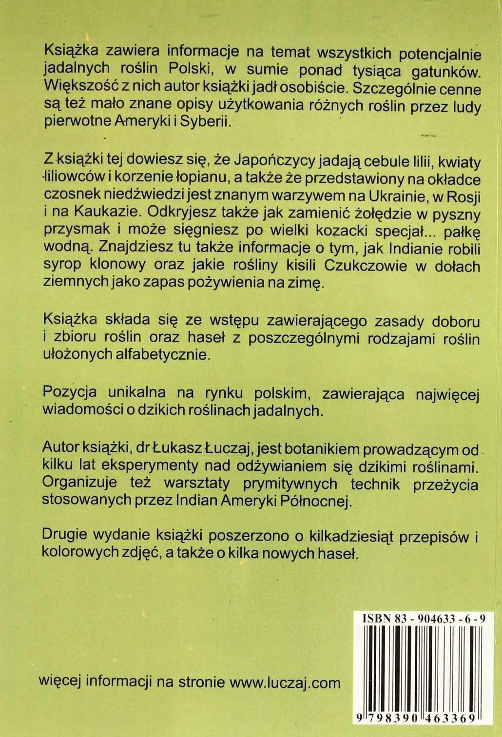 В книге собрана информация о потенциально съедобных польских растениях, всего более тысячи видов. Большую часть из них автор книги съел сам. Особую ценность представляют малоизвестные описания использования различных растений первобытными народами Америки и Сибири.