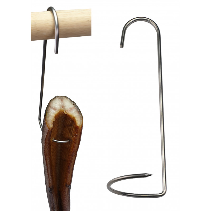 Курительный крюк для рыбы, привинченной 15/3 мм, является идеальным инструментом для любителей курения, особенно для приготовления больших голов без головы. Его уникальный дизайн с широкой, изогнутой острой частью диаметром 5 см позволяет устойчиво закрепить рыбу весом до 3 кг. Вставленная монтажная система позволяет крюку легко зацепить позвоночник рыбы, что дает уверенность и безопасность во время курения, что устраняет риск падения.