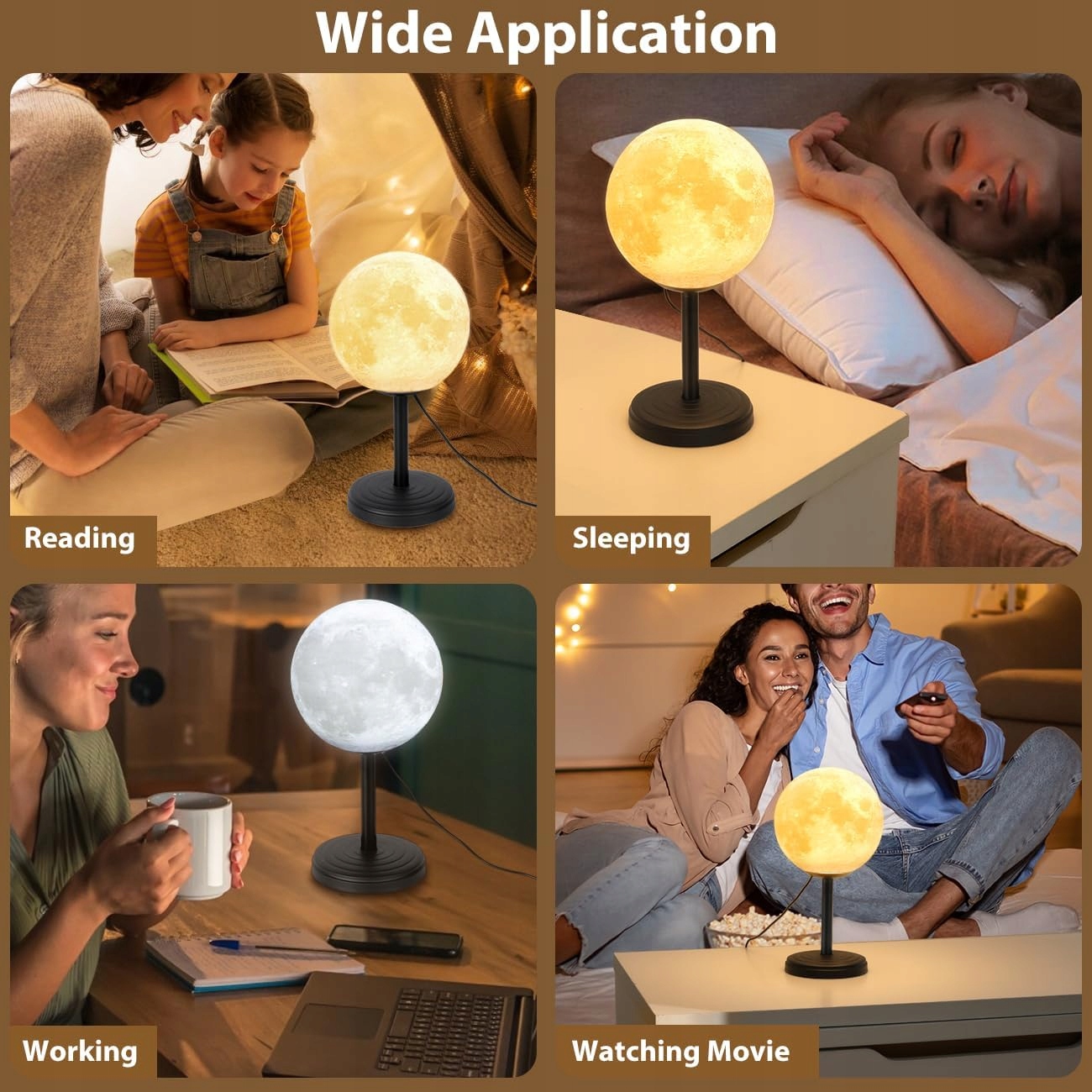 3D настольная лампа полностью имеет реалистичную форму луны. Свет, который исходит от внутренней части земного шара, делает всю комнату уютной.