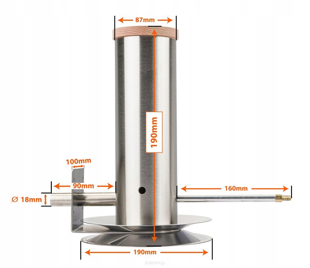 Инновационная насадка дымогенератора короче традиционных моделей и имеет двусторонний наклон. Это обеспечивает лучшую подачу дыма в коптильню и защищает сопло от возможного засорения щепой.