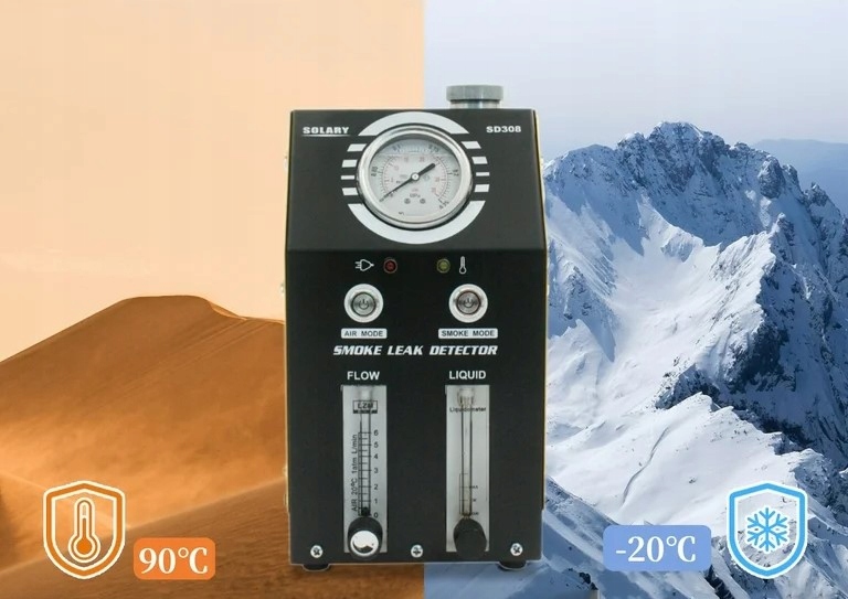 SOLARY SD308 — инновационное устройство, проверяющее герметичность различных систем. С помощью образующегося дыма, который вводится, например, во впускную систему двигателя автомобиля и предназначен для обнаружения даже микропротечек, которые могут привести, например, к потере мощности двигателя. Разработан везде, где необходимо проверить герметичность закрытых систем, например, топливопроводов, впускных систем, баков и т. д., поэтому широко используется в автомобильной и промышленной отраслях.