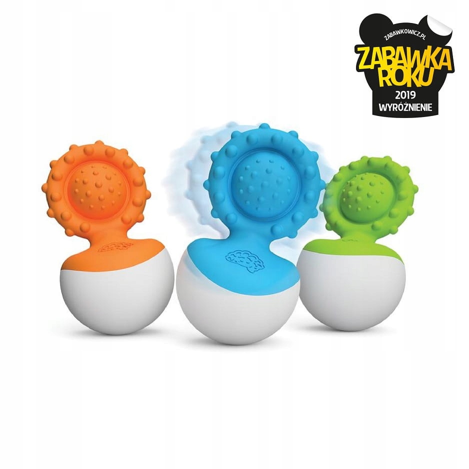 На одной стороне есть такой маленький оранжевый силиконовый пузырь. пальцы будут набиты, в силиконовой оправе, полной мелких выступов, стимулирующих осязание; с другой стороны, имеется круглый подъёмник для раскачивания и вращения, благодаря которому силиконовая часть прорезывателя никогда не будет лежать на полу. Качающийся Прорезыватель для зубов очарует детей своим движением, внешним видом и текстурой. Настоящая радость для чувств ребенка.