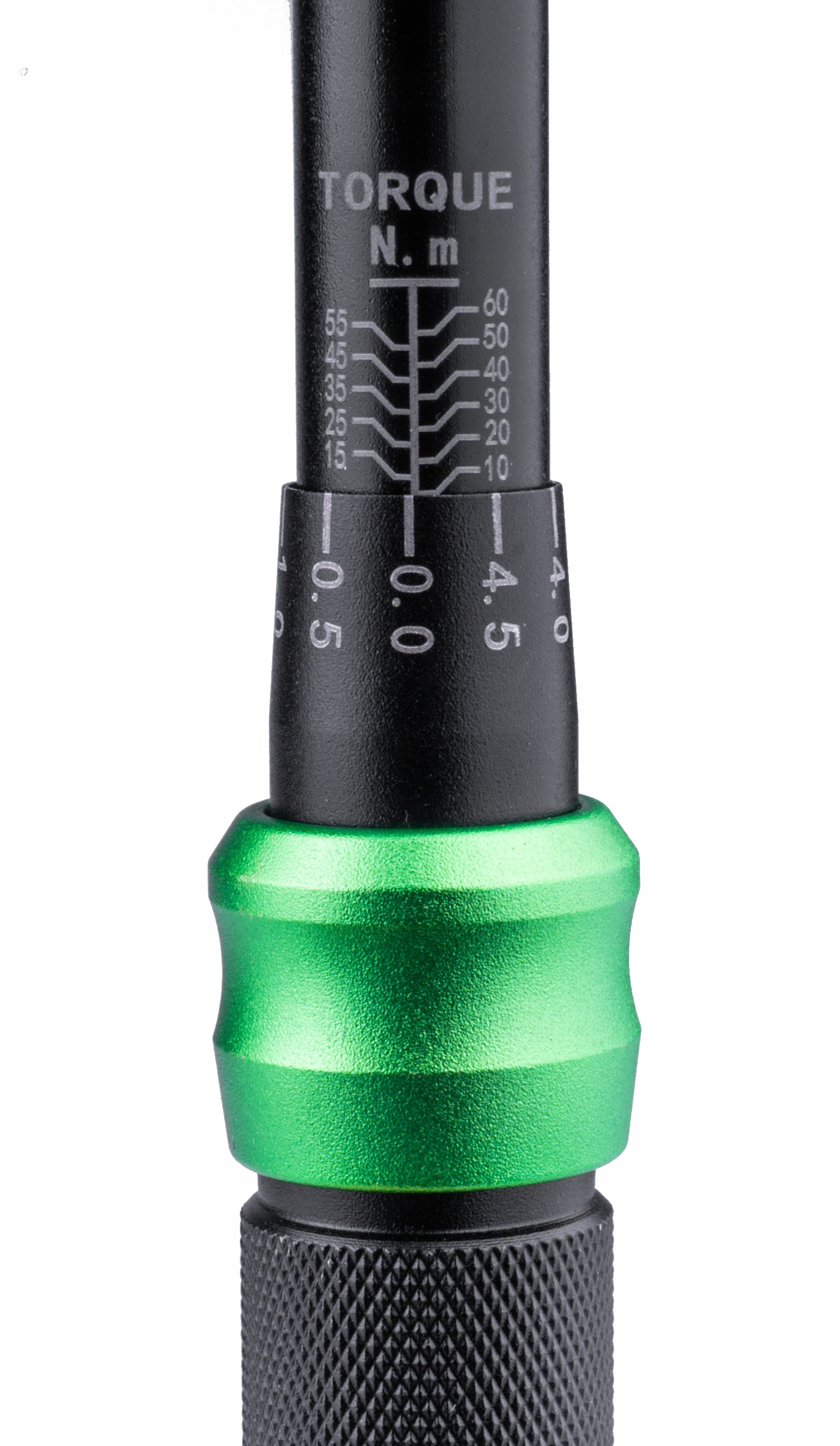 Удобная ручка имеет шкалу крутящего момента, которую можно регулировать поворотом кончика