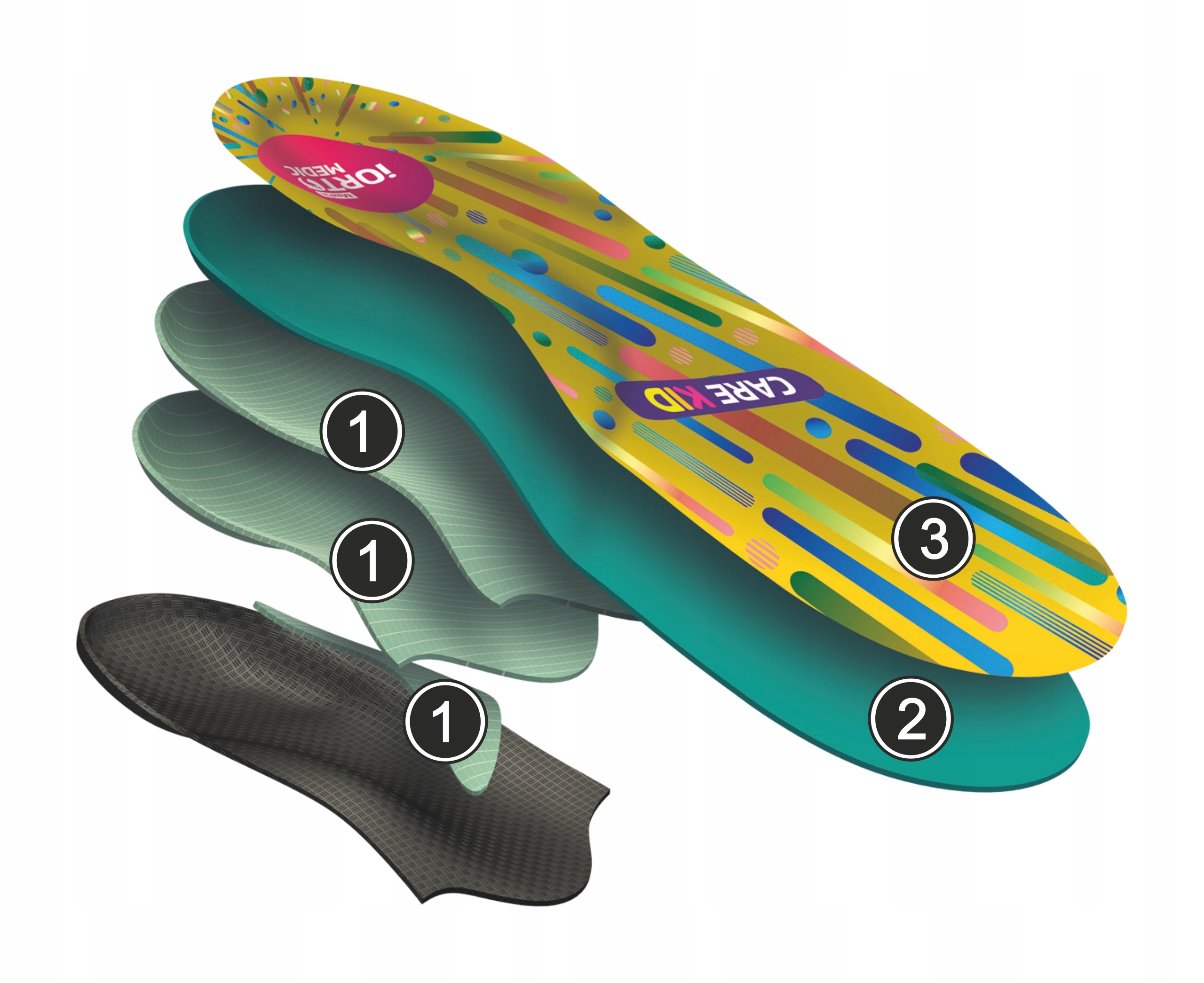 Конструкция динамических ортопедических стелек iORTO Medic Care Kid: