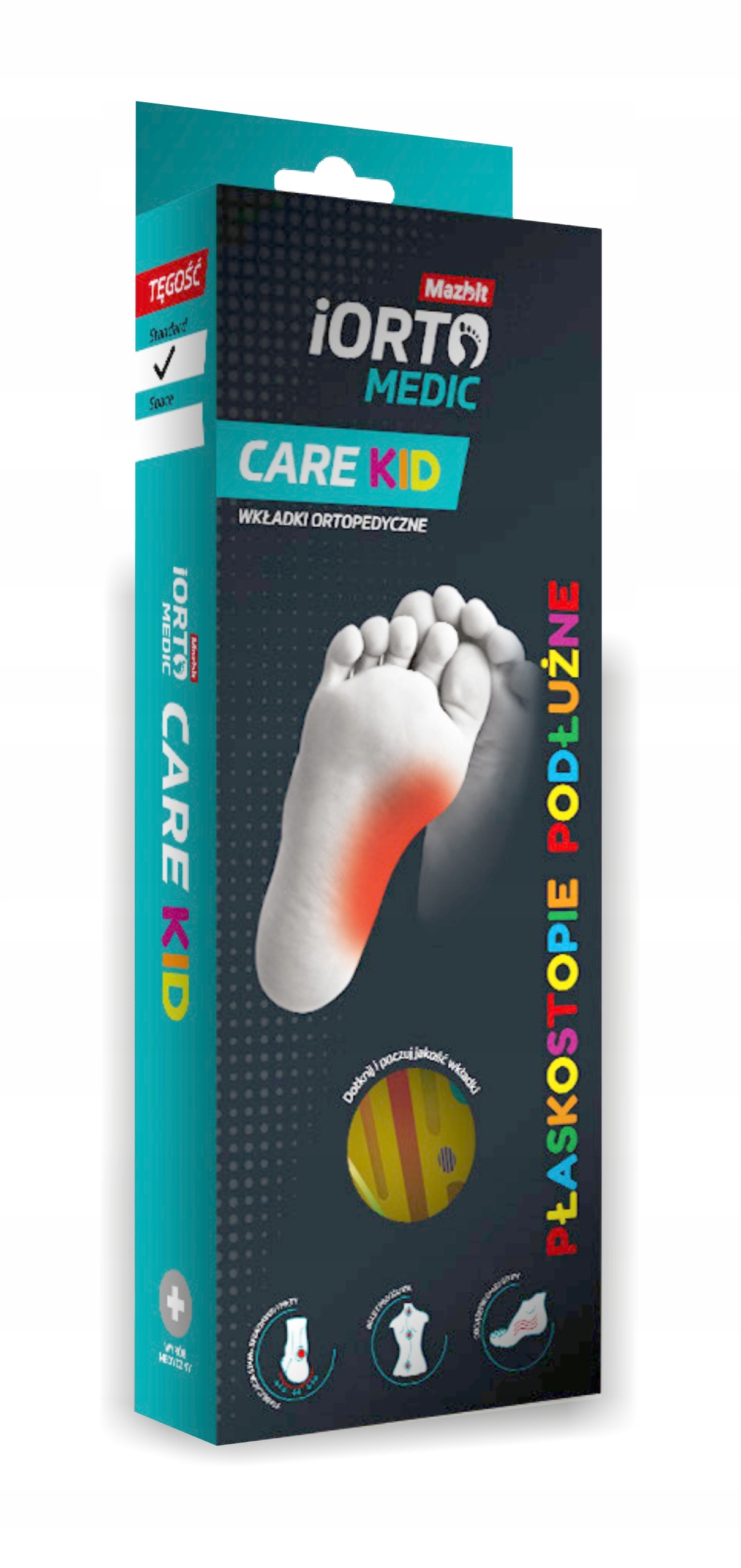 Современные, динамические ортопедические стельки iORTO Medic Care Kid Standard b>являются медицинским продуктом высочайшего качества от польской компании Mazbit. Стельки iORTO MEDIC Care Kid предназначены в первую очередь для детей с диагнозом продольное плоскостопие и/или вальгусная деформация, а также для тех, кому требуется стабилизация пятки. и голеностопный сустав (например, после травмы голеностопного сустава). Благодаря своей структуре, обеспечивающей динамическую поддержку продольного свода стопы, они не только уменьшают симптомы заболевания, но и устраняют его причину.