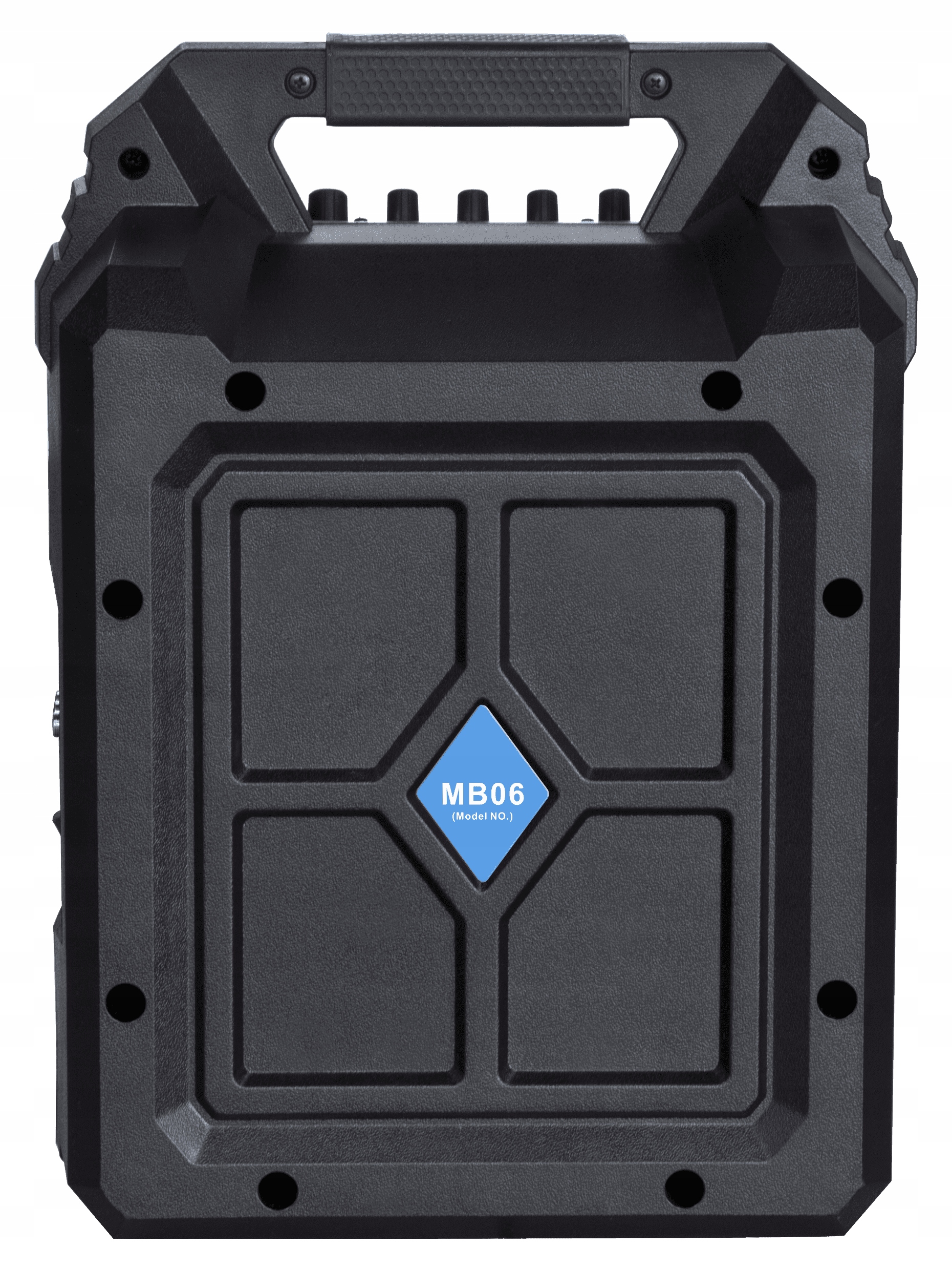 Встроенный модуль Bluetooth позволяет воспроизводить любимую музыку с портативных устройств, таких как смартфоны или планшеты, по беспроводной сети. На передней панели находится порт USB и слот для SD-карты максимальной емкостью 32 ГБ, что также позволяет пользователю воспроизводить аудиофайлы, хранящиеся на SD-картах или портативных USB-накопителях любого типа. Еще один вход, расположенный на боковой стенке корпуса колонки, — это порт AUX, благодаря которому можно подключить любые дополнительные проводные источники звука. Устройство поддерживает музыкальные файлы, сохраненные в самых популярных на данный момент аудиоформатах, то есть MP3 и WMA. Также MB06 имеет встроенный FM-тюнер с возможностью сохранения 99 станций, что позволит вам слушать любимую станцию без необходимости каждый раз искать частоты.