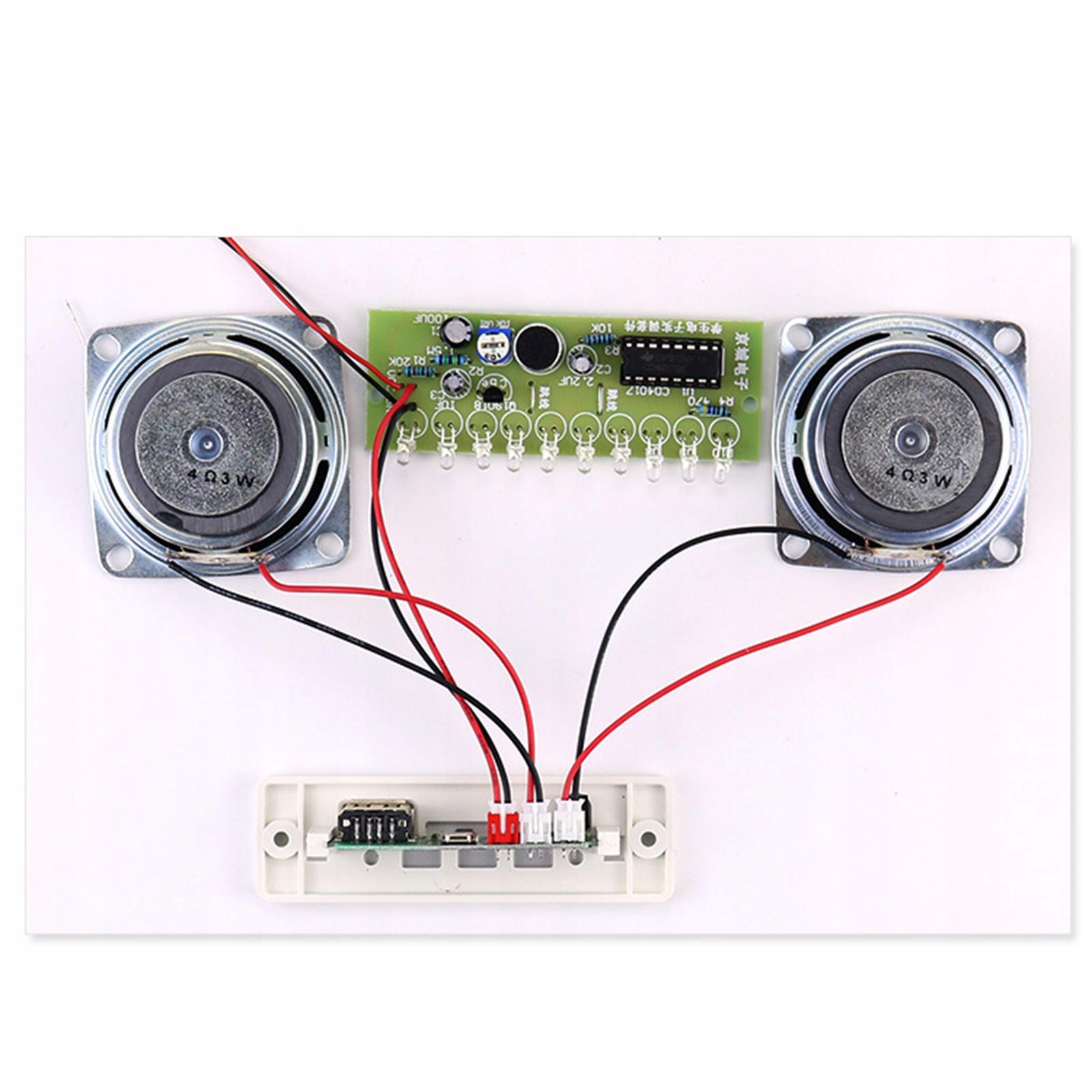DIY -динамик набор динамиков: двухканальный маленький динамик, электроника DIY Sodle Практика проектирования процедуры пайки. Питание может быть включено из зарядного устройства для мобильного телефона или 5 -вагольного питания. Качество звука лучше при использовании источника питания 2A.
