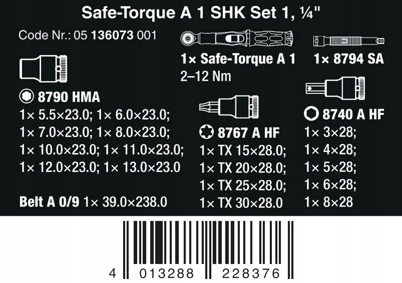 Динамометрический ключ Safe-Torque A 1 с 1/4 четырехугольника, 2-12 нм, 1/4 "x 2-12 нм