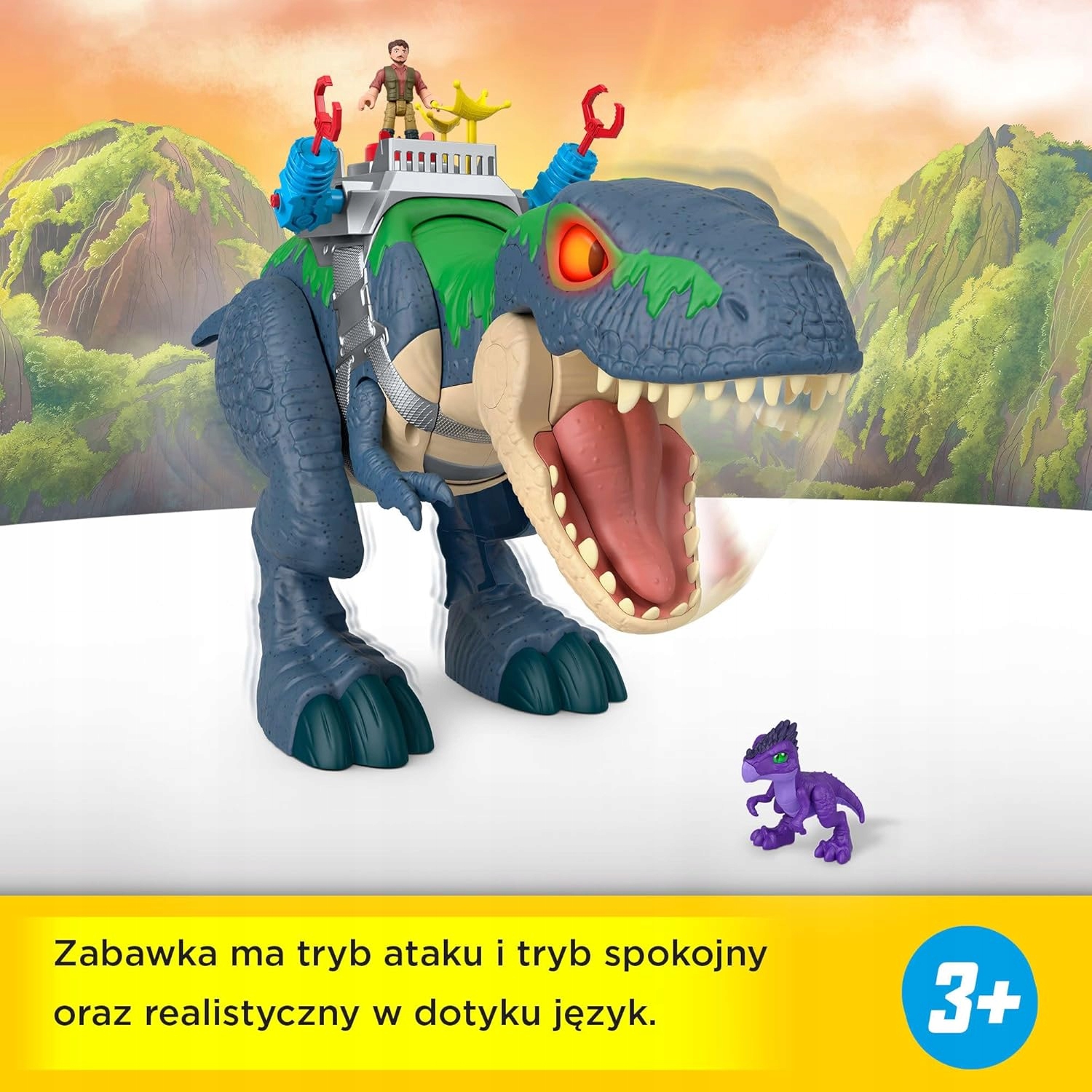 Динозавр может ловить в рот более мелкие фигурки, а затем выпускать их, создавая захватывающие веселые сцены 😲🎯. Его язык и челюсти сделаны из реалистичного материала, что добавляет еще больше тактильных ощущений 👋😄.