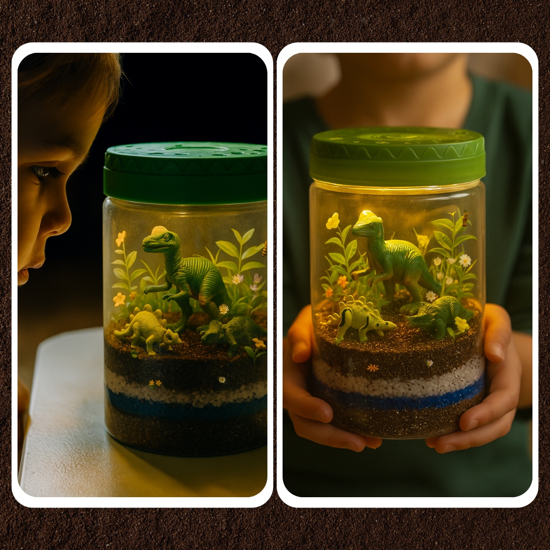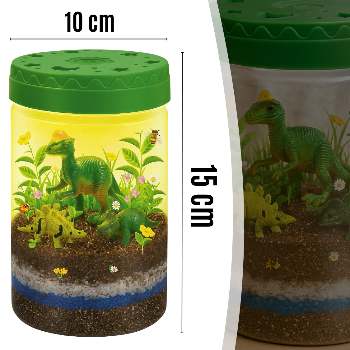 ➡️ СВЕТЯЩИЙСЯ СВЕТОДИОДНЫЙ ЭФФЕКТ — встроенная лампа создает волшебный ночник, освещающий весь мир динозавров. Благодаря этому террариум становится ночником и украшением комнаты.