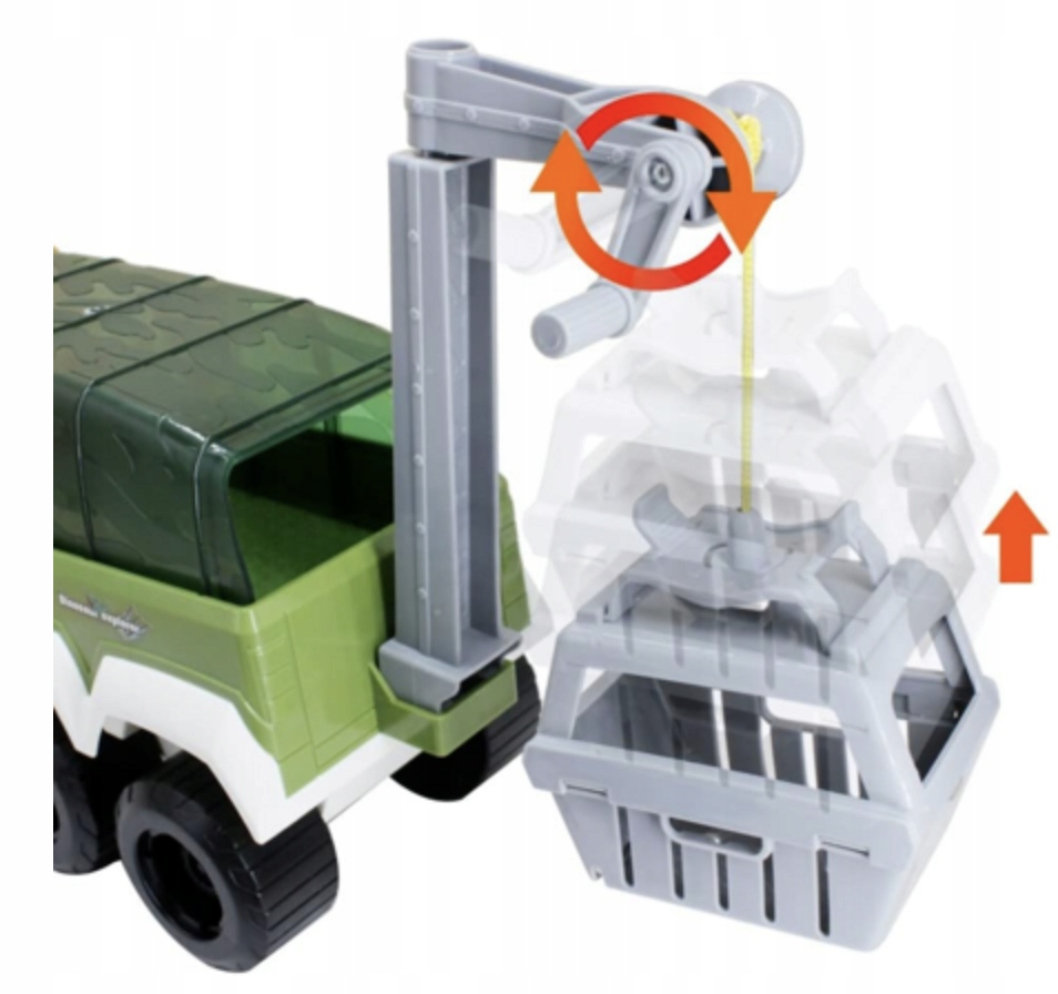 Дополнительным элементом набора является корзина для ловли динозавров, которая оснащена регулировочным механизмом, позволяющим ее опускать и поднимать. Благодаря специальной ручке ребенок сможет легко маневрировать корзиной и ловить динозавров!