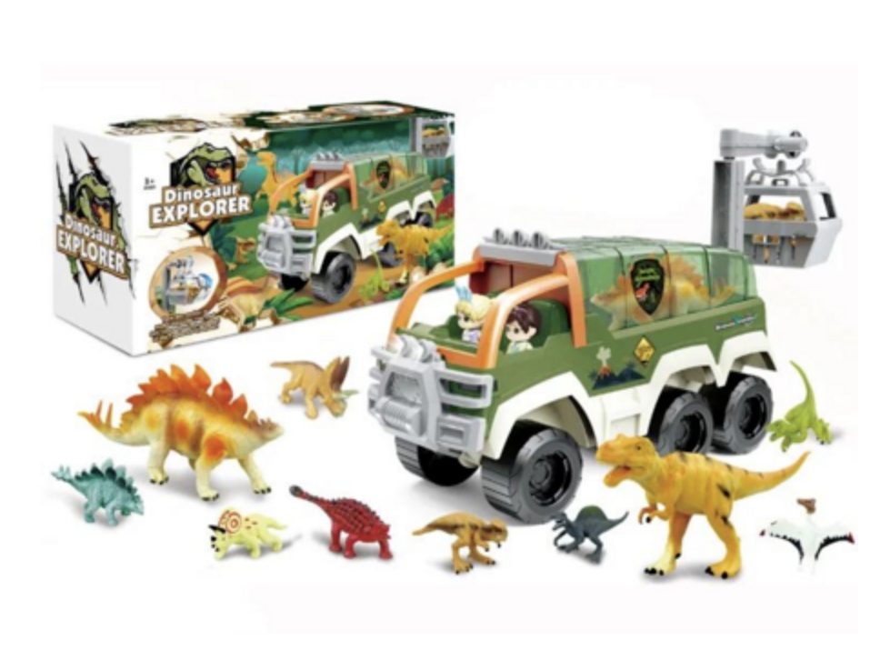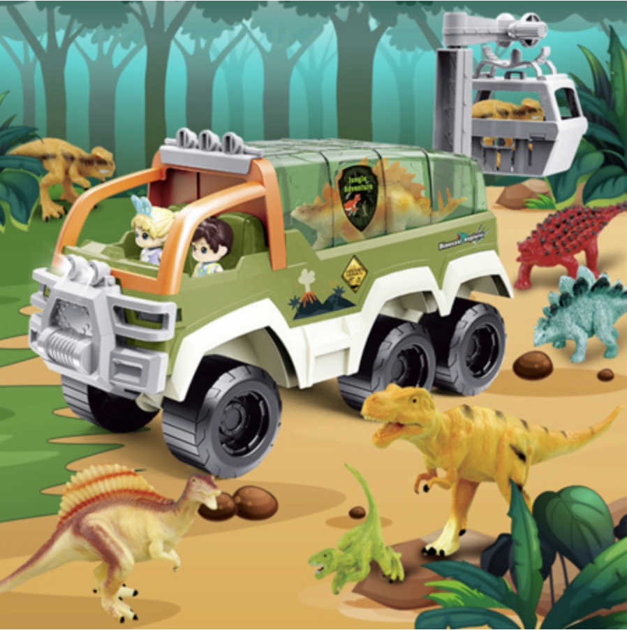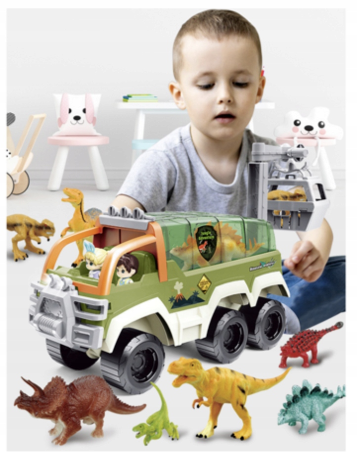 ДИНОЗАВРИК АВТОМОБІЛЬ ВІДКРИТТЯ ДАХ ПЕРЕМІЩЕННЯ КОШИК СВІТЛО ЗВУК ФІГУРКИ
