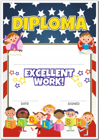 Диплом на тему английского языка. Отлично подходит для детей в конце учебного года или для соревнований по английскому языку.
