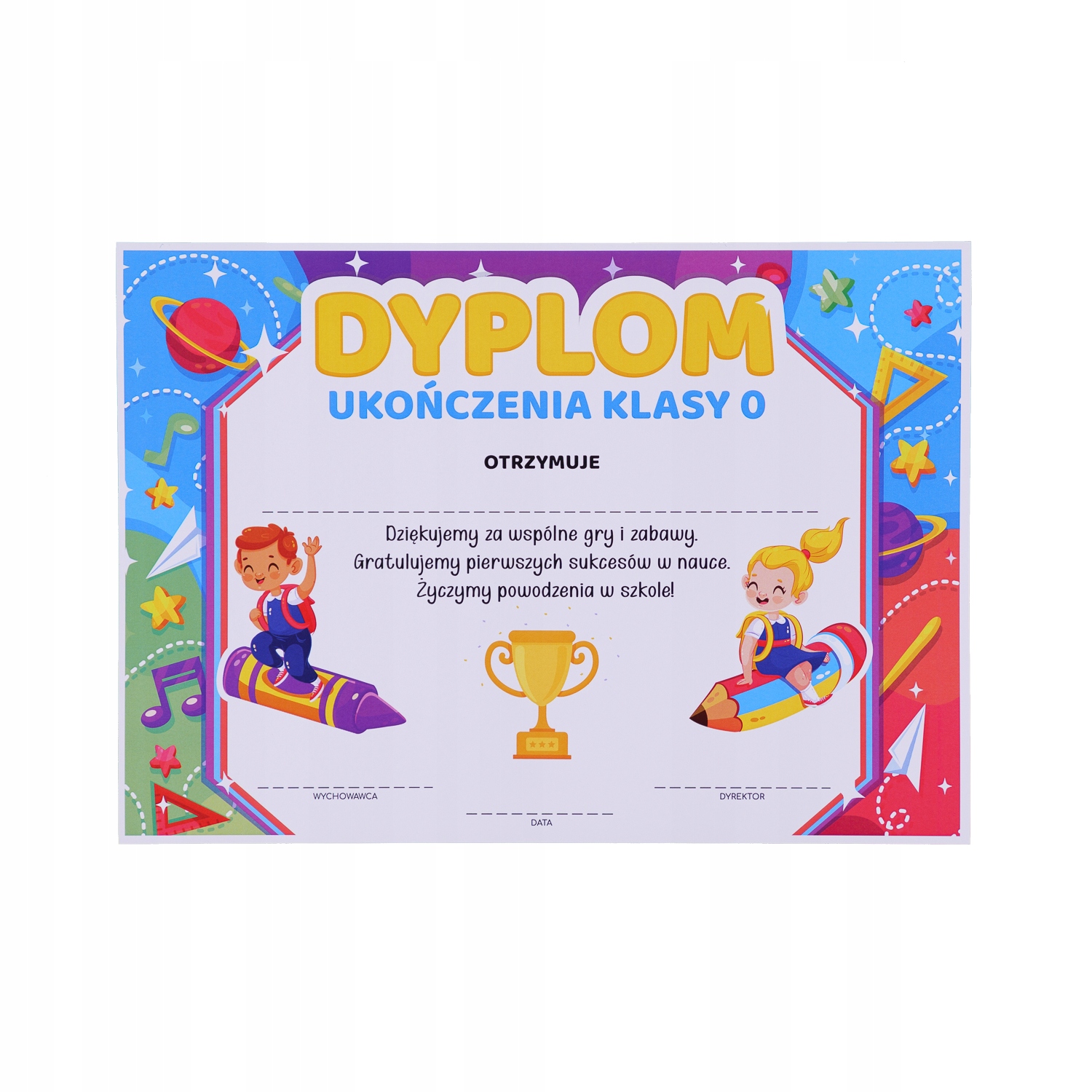 Красочные картинки и школьный мотив на дипломе добавят ему шарма и внесут разнообразие в завершение учебного года для каждого ребенка.