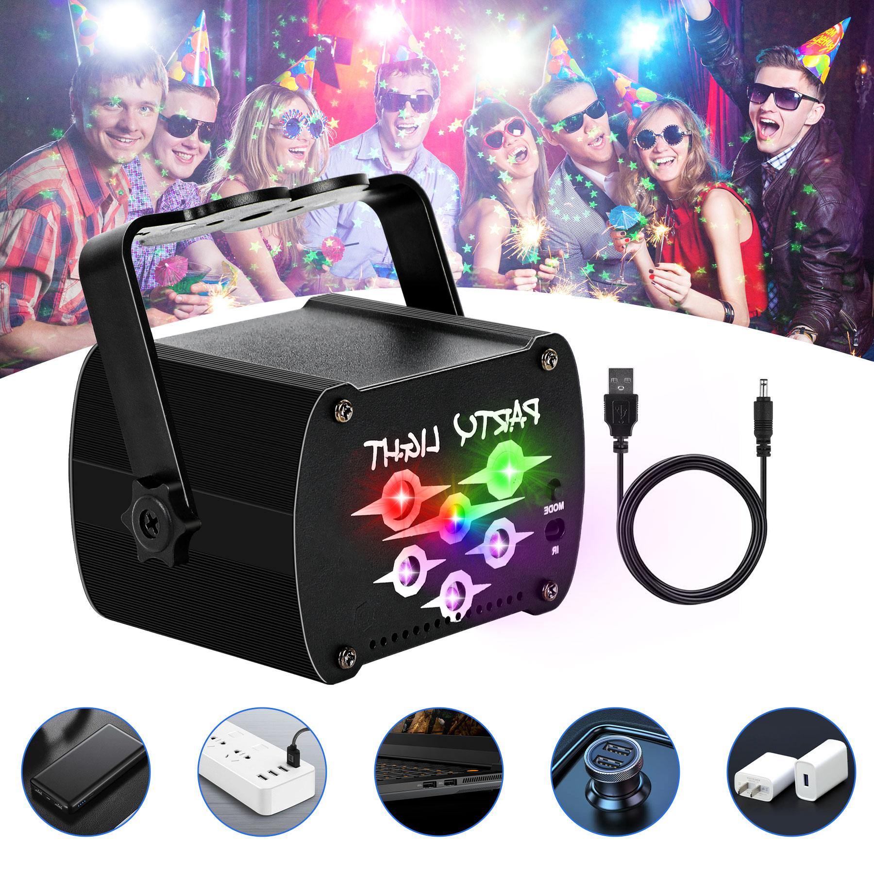 Свет вечеринки идеально подходит для вечеринок по случаю дня рождения, семейных встреч, ночных клубов, баров, банкутов, свадеб, общественных мест, ледяных катков, танцевальных показателей, караоке, в помещении и на открытом воздухе и отличного дополнения к каждому вашему счастливому моменту.
