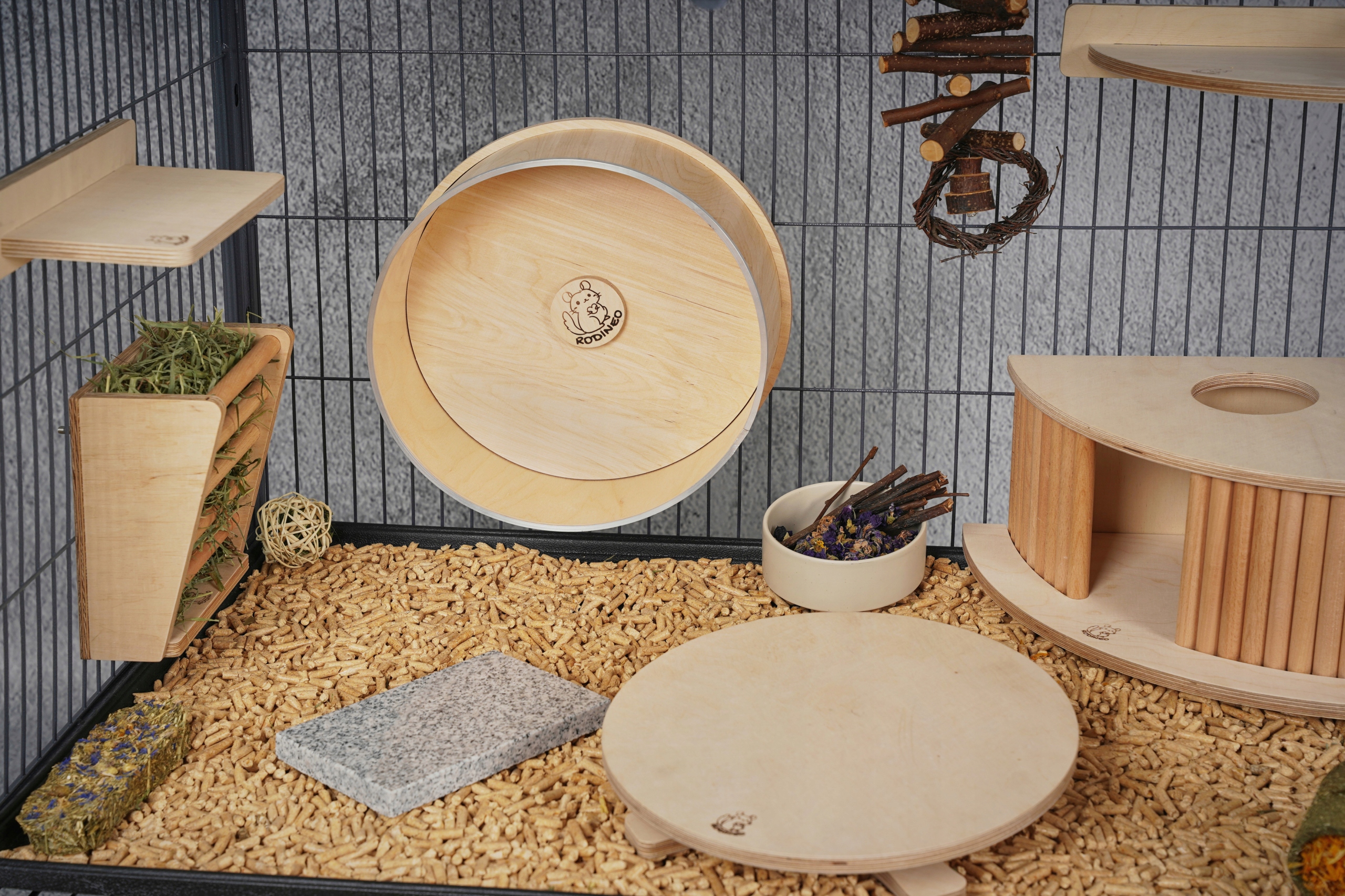 Представляем деревянный вращающийся диск, специально разработанный для шиншилл. Этот диск диаметром 40 см является отличной альтернативой традиционным катушкам и доставит вашему питомцу массу удовольствия и полезного для здоровья занятия.