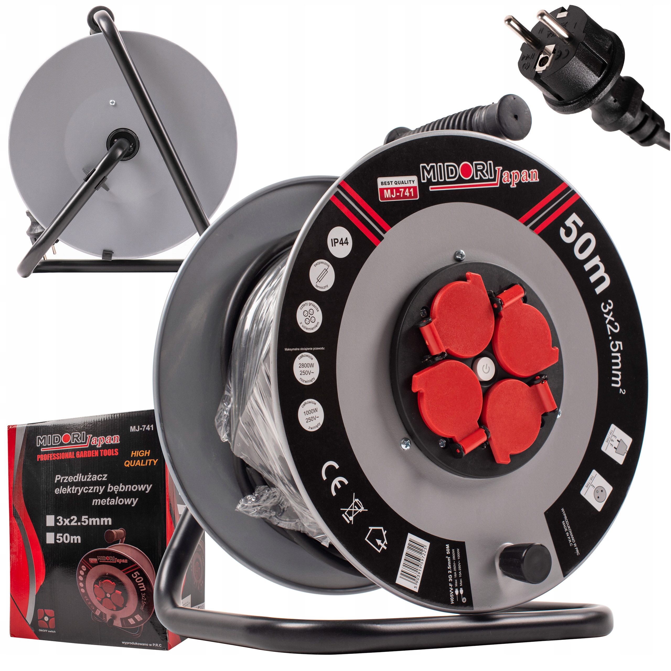 Удлинитель удлинителя барабанного сада 45 м / 50 мл 3x2,5 мм металлический лоскут