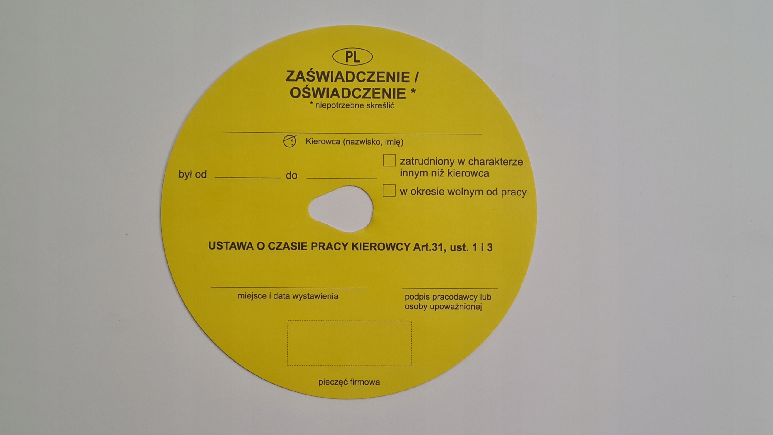 ДИСКИ ТАХОГРАФА ЖОВТИЙ СЕРТИФІКАТ ПАРКОВКИ