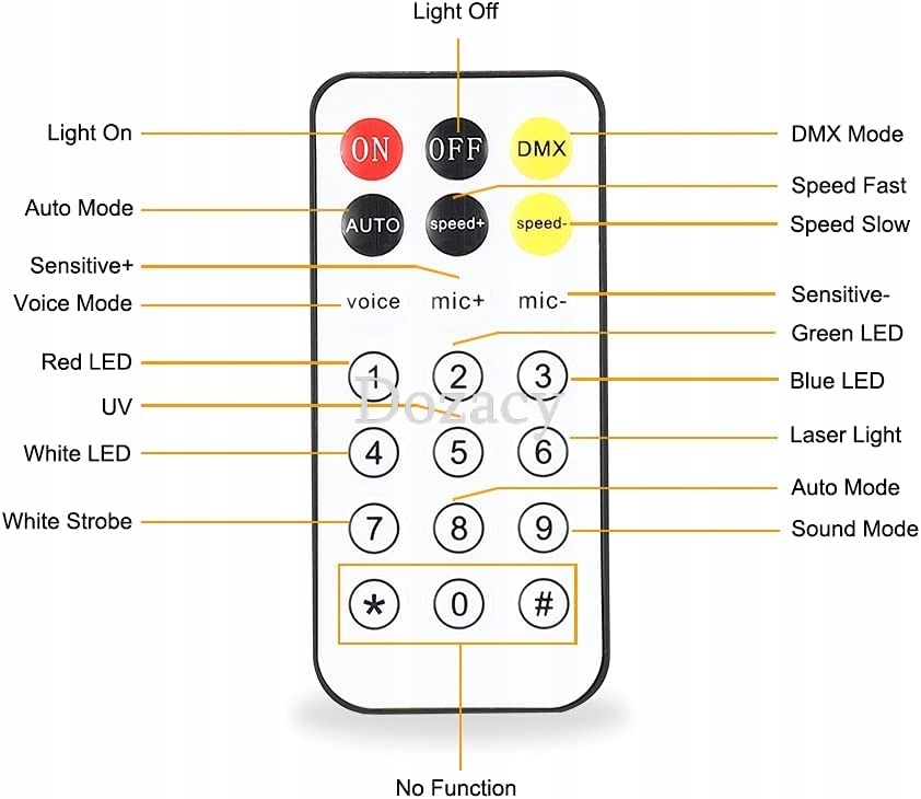 【Пульт дистанционного управления и DMX-управление】 Этот режим работы осветительного прибора: автоматический, DMX512, звуковая активация, главный/подчиненный и дистанционное управление. С помощью пульта дистанционного управления вы можете свободно управлять световыми эффектами по своему усмотрению. Вы также можете использовать управление DMX, чтобы наслаждаться более профессиональными эффектами.