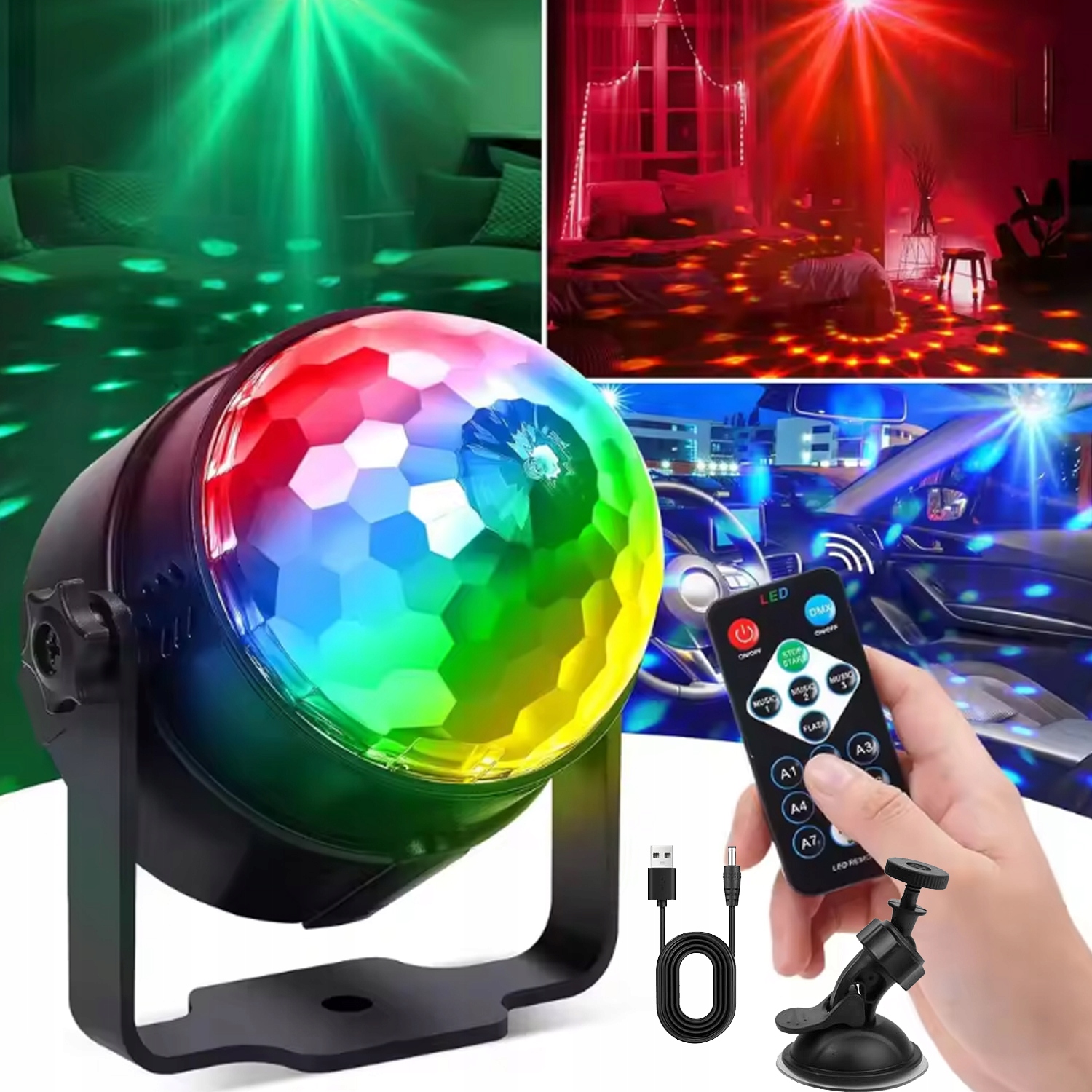 Дискошар, вращающийся на 360°, активируемый музыкой, светодиодный светильник для вечеринок с дистанционным управлением — RGB, 3–6 Вт, динамические световые эффекты, 4 м/13 футов USB-светильники для вечеринок, Хэллоуина, свадеб