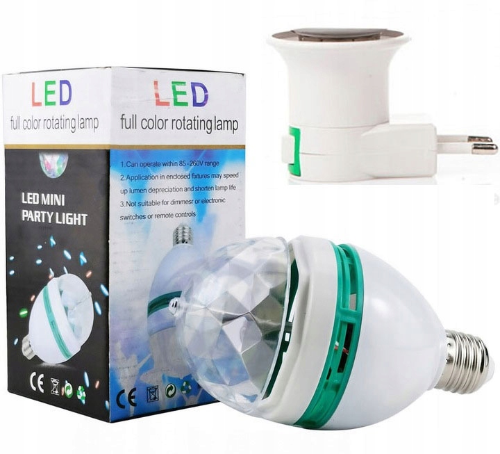 Светодиодный проектор | Вращающаяся лампа для диско-шара + адаптер E27 для розетки 230 В
