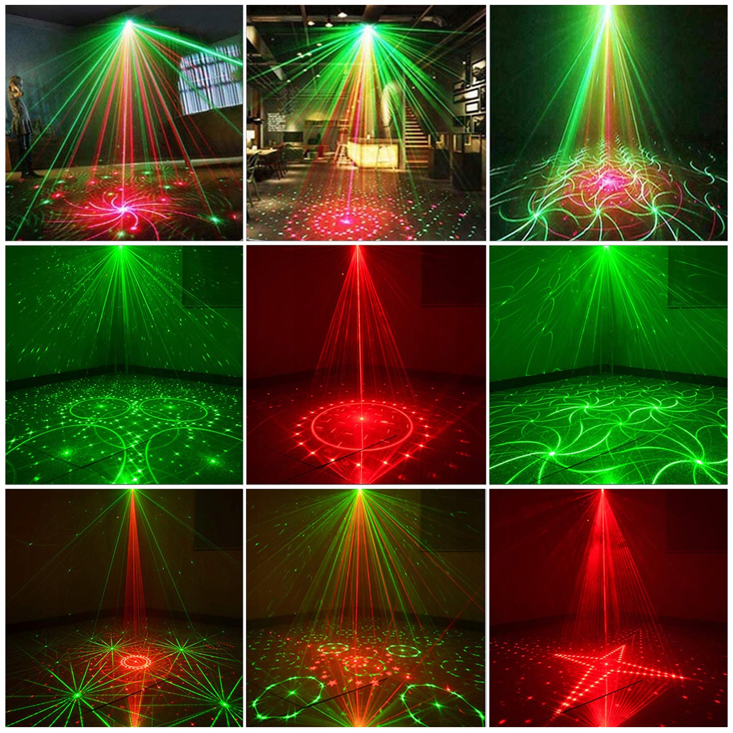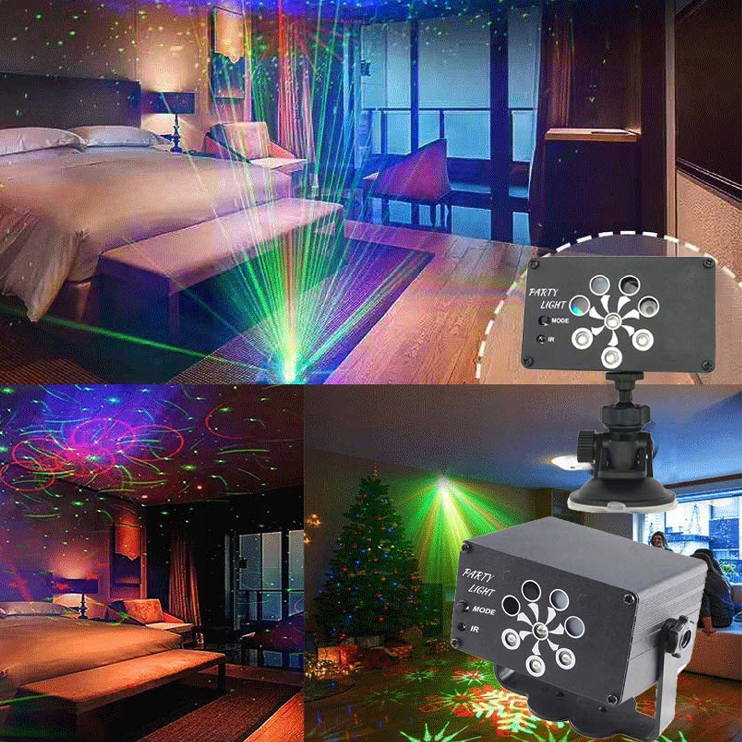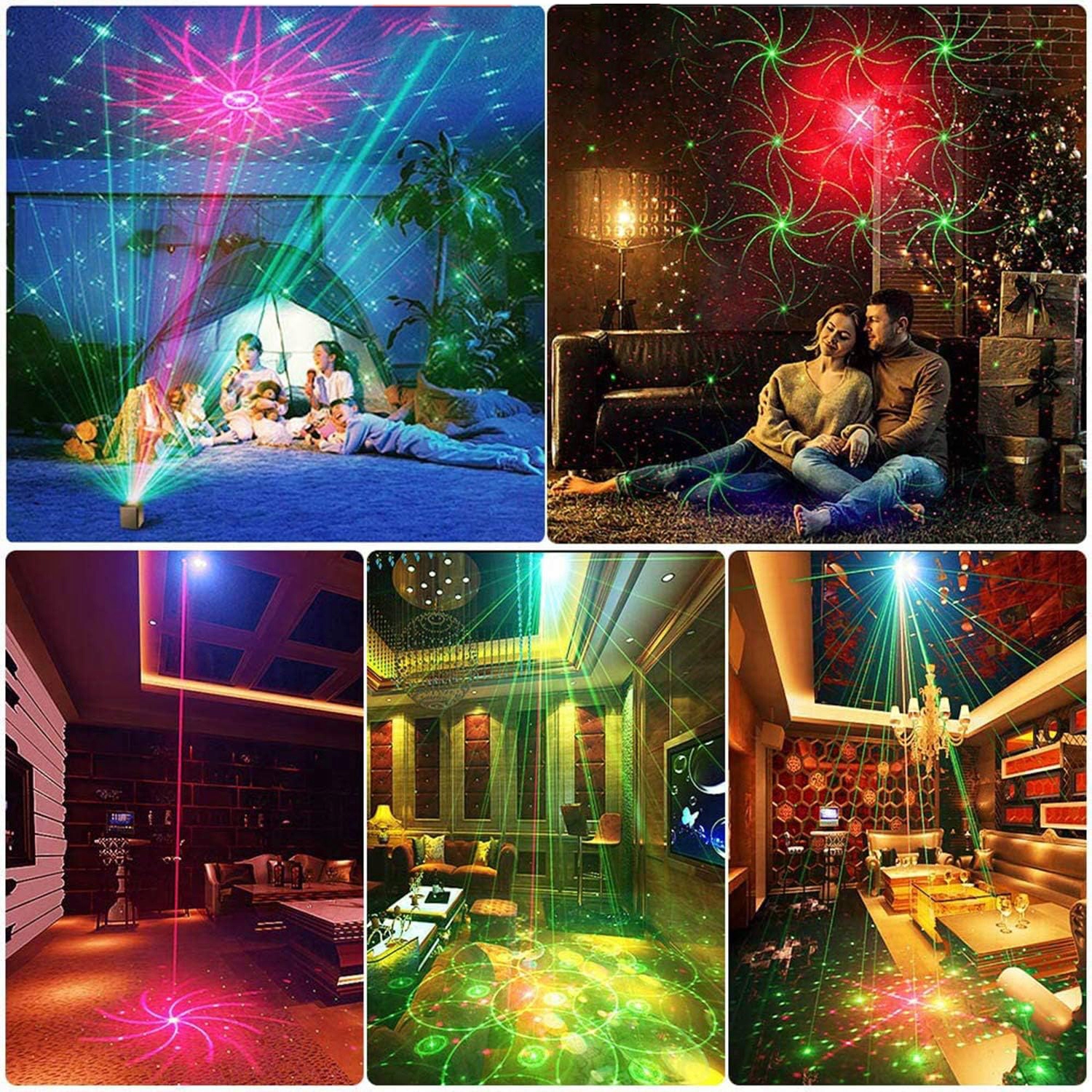 - Стробоскоп имеет 8 линз источника света (красный и зеленый и светодиодная подсветка), 240 шаблонов, цвет и скорость меняются в соответствии с ритмом звук/музыка. Удивительные комбинации делают ночь еще более красочной.