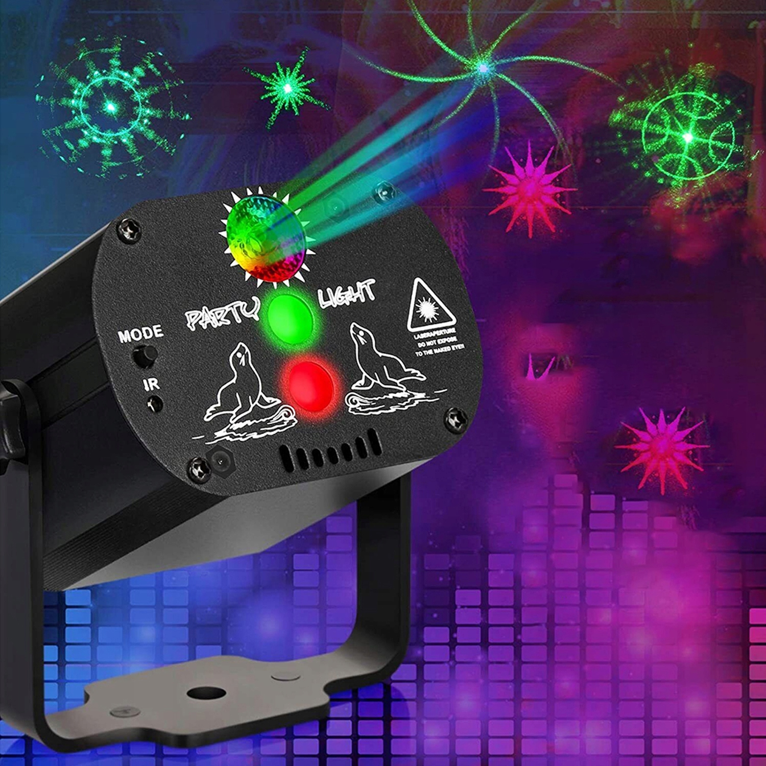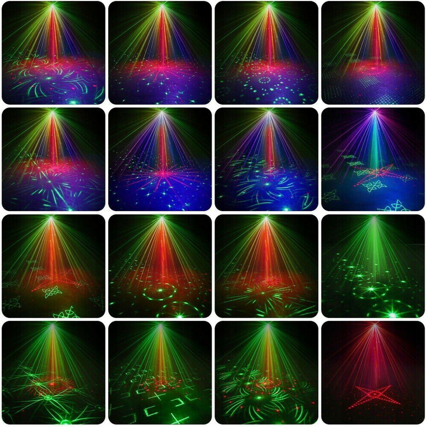 Расширьте лазерный луч вечеринки, чтобы получить 60 комбинаций изображений, 6 цветов фона (красный, зеленый, синий, красный и зеленый, красный и синий, синий и зеленый) и 3 комбинации лучей (зеленый, красный, зеленый и красный), создавая более захватывающую атмосферу на сцене за счет объединения нескольких эффектов и проекции высокой четкости. качество.