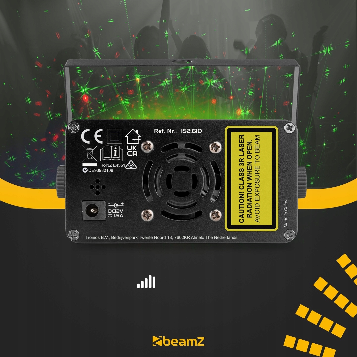Лазерный эффект BeamZ Acrux сам по себе очень крутой... но если вы хотите, чтобы он был еще красивее, вам обязательно стоит подумать о покупке дым-машины (код продукта: 160.710). , аукционный номер 12575952031 ). Если впустить в комнату немного дыма/тумана, лазерные лучи станут видимыми, создавая красивый 3D-эффект. Дополнительно можно, например, придать дыму аромат, что тоже придаст ему дополнительное измерение.