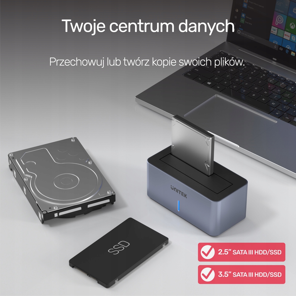 Обеспечьте быструю и безопасную передачу данных с помощью док-станции Unitek! Благодаря поддержке SATA SSD и HDD 2,5" и 3,5" дюймовых жестких дисков вы можете эффективно управлять популярными и широко доступными на рынке жесткими дисками. Установка привода на станции осуществляется быстро и просто – не требует использования инструментов.