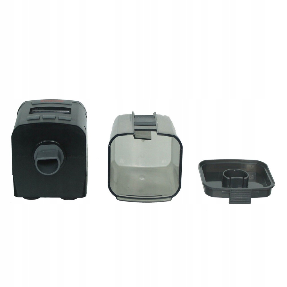 Функциональные клавиши защищены от брызг. Система оповещения быстро показывает низкий уровень заряда батареи. Разумеется, кормушки вписываются в отверстия для кормушек аквариумных колпаков VARILUX; они также оснащены держателем для открытых аквариумов и террариумов - также для наноаквариумов.