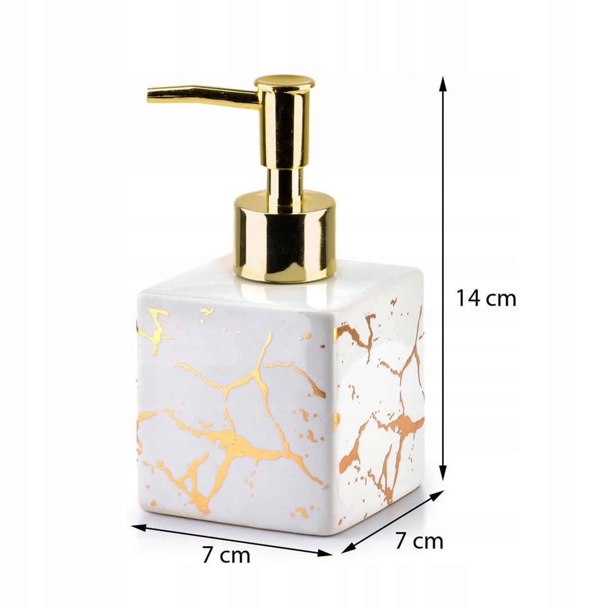 ✅ Изготовлен из керамики, белое покрытие с позолотой, имитирующей мрамор, насос из пластика золотого цвета
