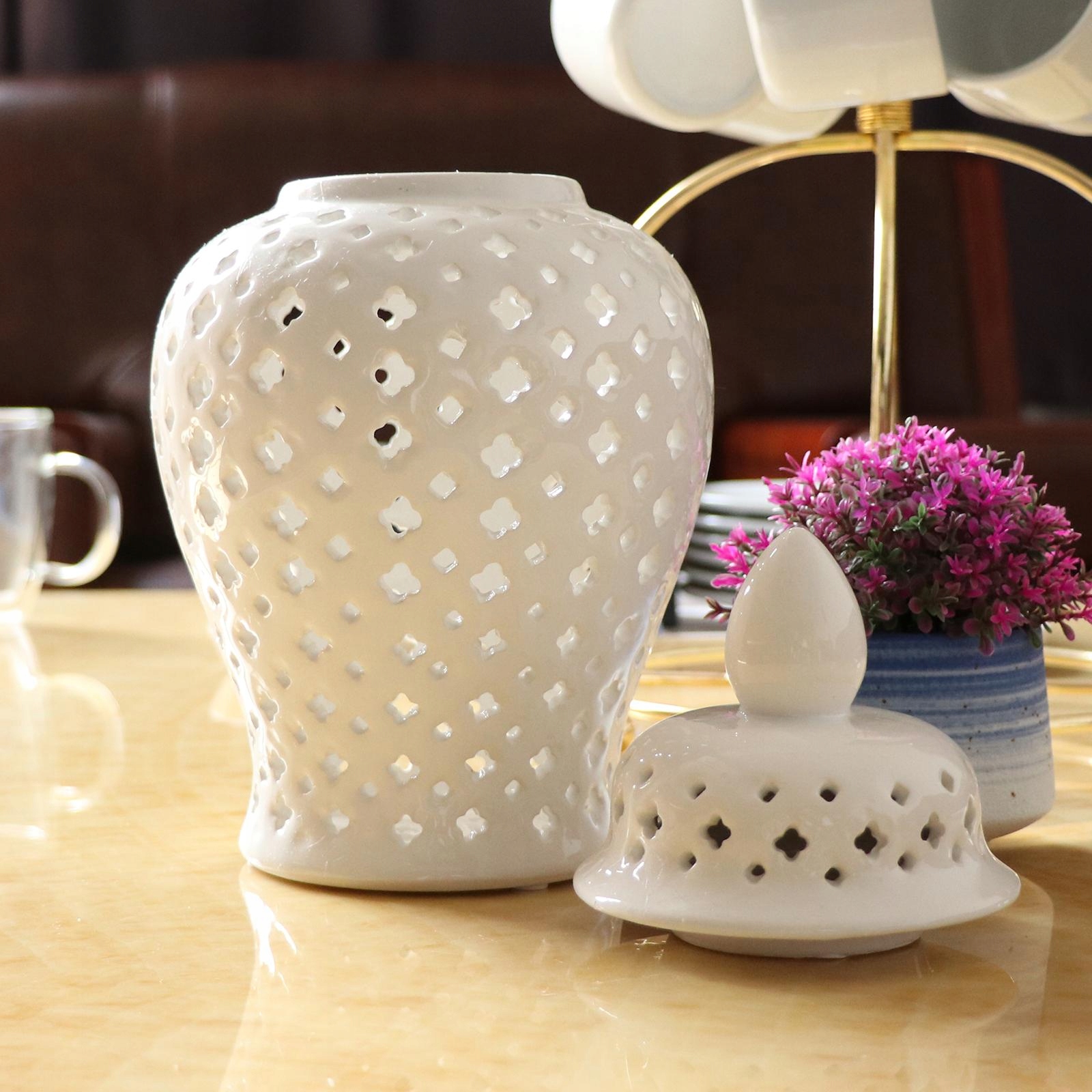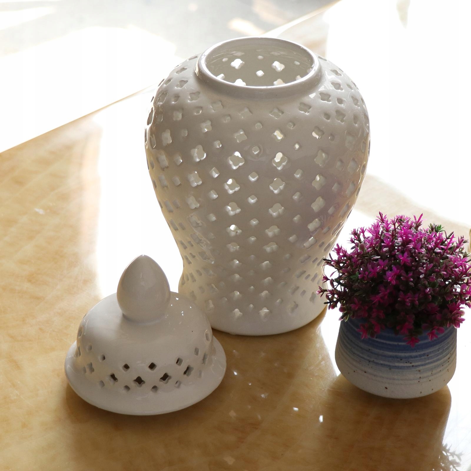 Требоваты: поверхность банки с ручной рельефом в схему натуральной порезы, увенчанный натуральным блеском белой глазуни. Фарфоровая банка с решеткой решетки, рта банки гладкая, а красочная расположена снаружи, а внутри банка крышки можно снимать, идеально подходит для хранения цветов, структура придает естественный вид, в то же время внедряя веселое настроение для вашего дома или сада