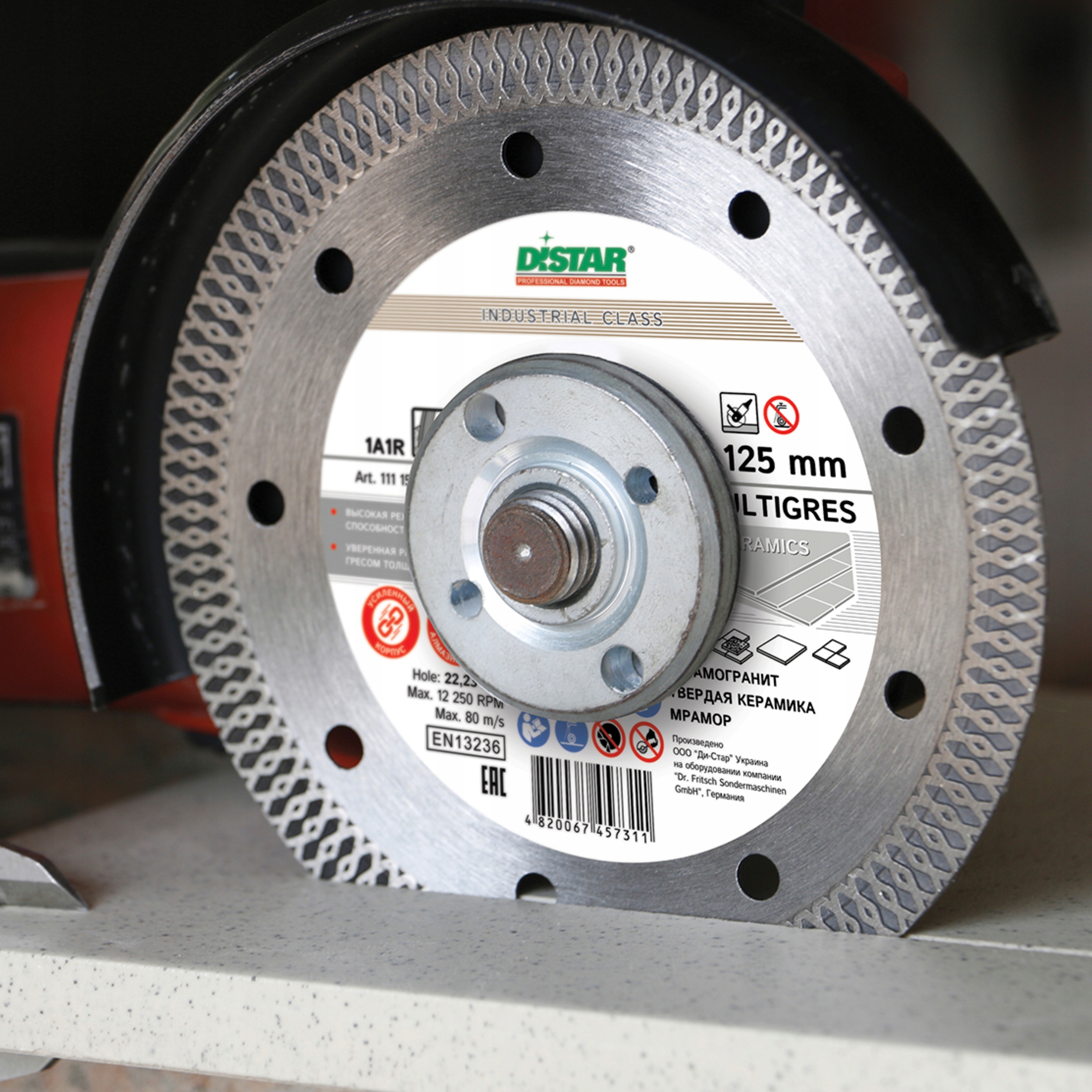 Диск Distar Multigres предназначен для быстрой резки твердой керамической и керамогранитной плитки, утолщенный. керамогранит толщиной до 20 миллиметров.