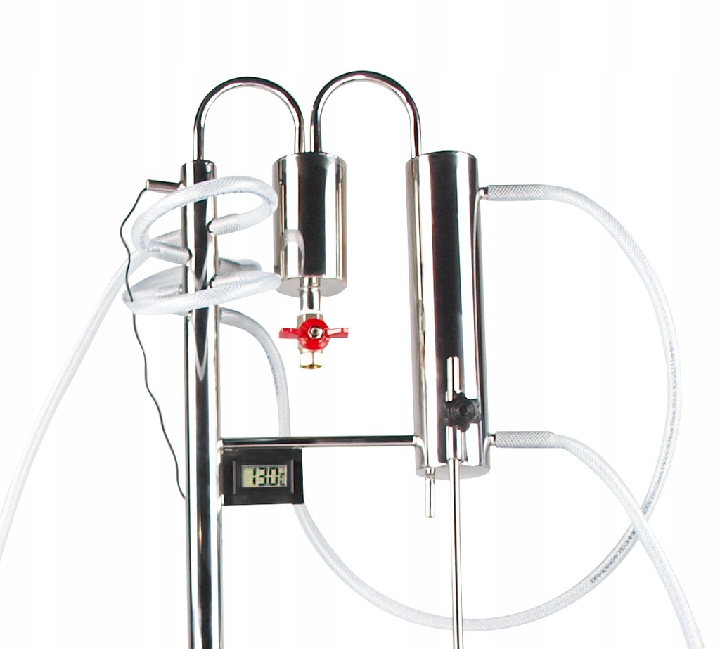 Один большой осветлитель/дефлегматор емкостью 600 мл, оснащенный сливным клапаном 3/8 дюйма и электронным термометром, прикрепленным к решетке, показанной на фотографии