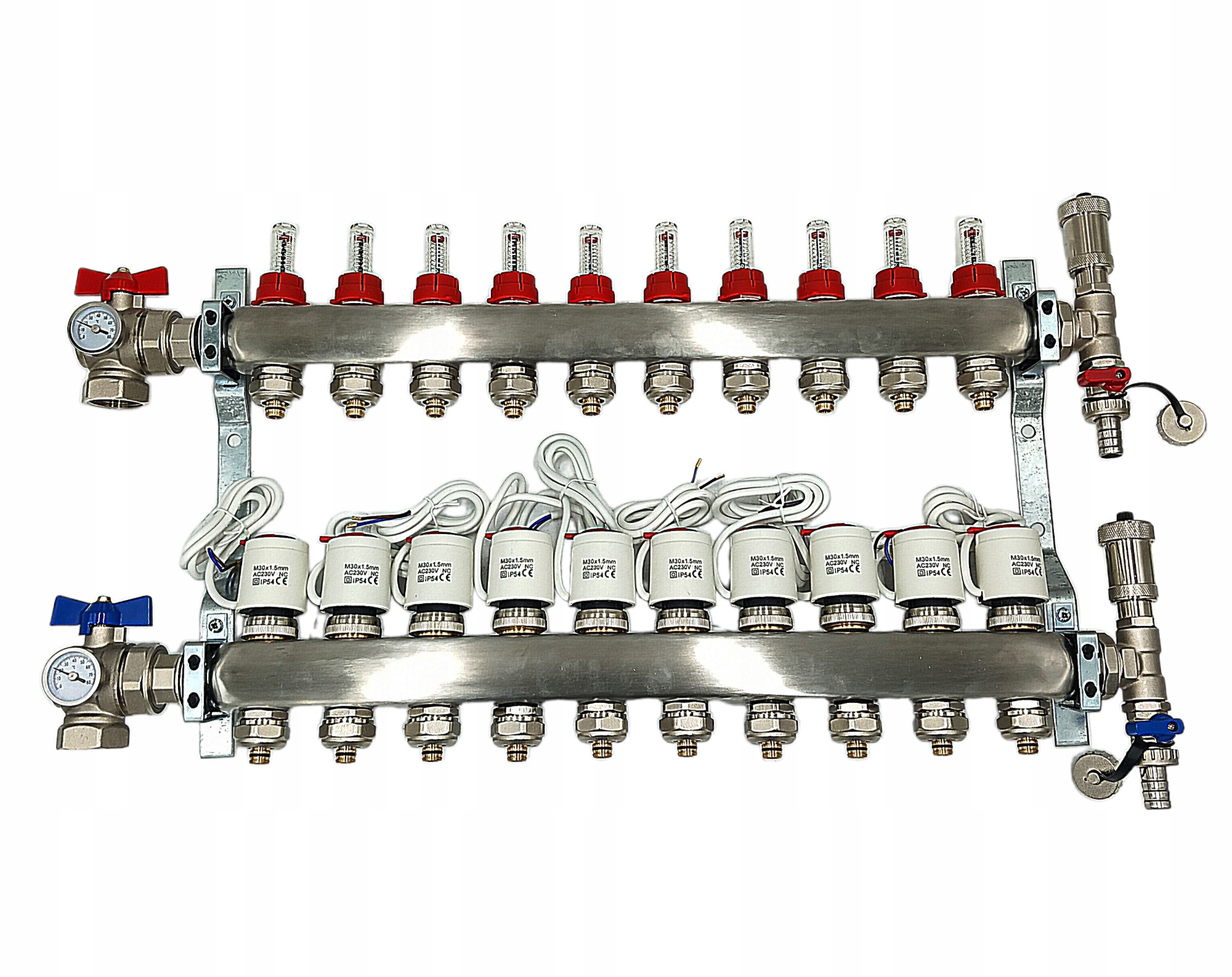 1x 10-circuit with thermostatic inserts and reduction nipples (under the Euroconus connector)