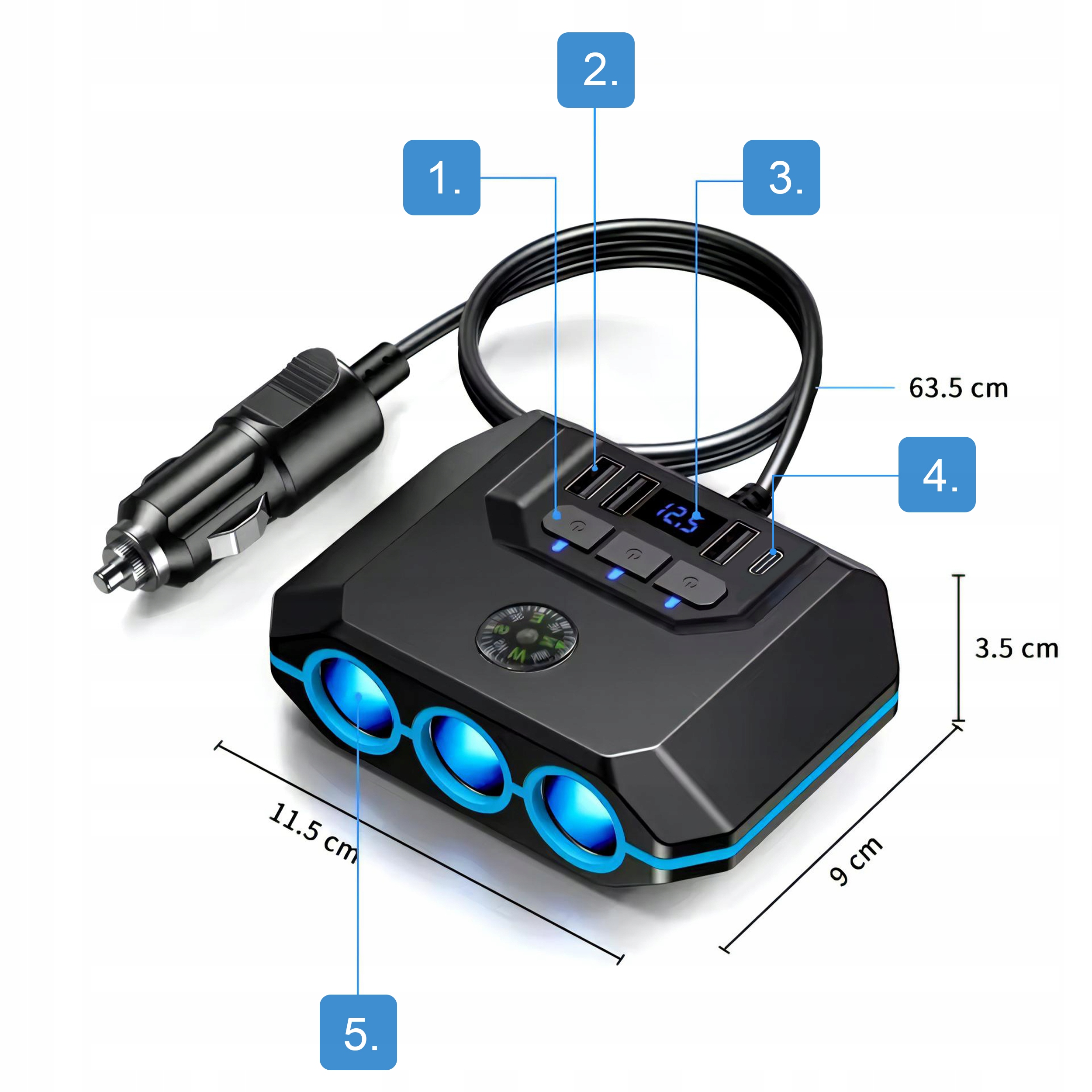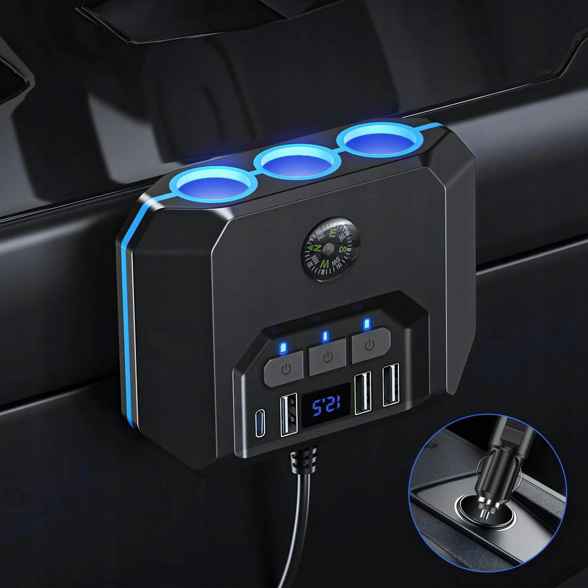 Высокие уровни удобства и эффективности зарядки в вашем автомобиле благодаря нашему устройству - Инновационный дистрибьютор сигаретного сокета. Этот незаменимый гаджет предлагает до 3 портов USB + 1 USB-C Port и встроенный вольтметр , так что вы можете загрузить многие устройства и контролировать натяжение транспортного средства . Наслаждайтесь быстрой зарядкой и безопасностью во время каждого путешествия! Мы представляем вам коллектор с зажиганием сигарет, инновационное устройство, которое предоставит вам удобство, скорость зарядки и надежность, где бы вы ни находились в пути