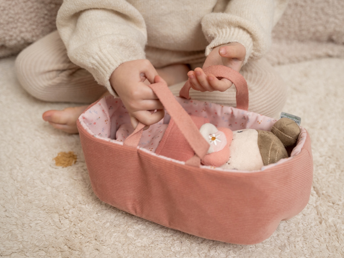 Познакомьтесь с ребенком Малыша Розы. Деликатная плюшевая кукла хочет обнять, и благодаря практической спальной корзине вы можете взять ее везде. Забота о такого ребенка может быть трудным, благодаря тому, что дети учатся смешно. Розу следует питаться регулярно или давать соска. Вы не можете забыть о смене подгузника, вы должны спать в спать в спальном мешке и покрыть одеялом, чтобы не холодно.