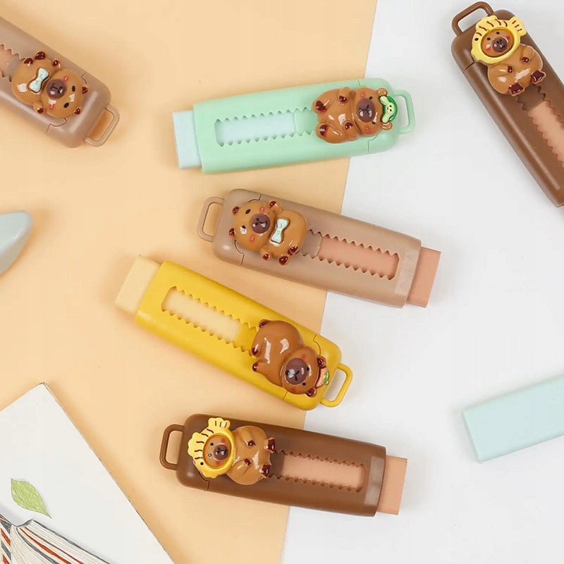 Eraser для истирания какрабара, как нож, как нож, является идеальным выбором для каждого ученика, который ценит функциональность и эстетику. Благодаря твердому корпусу, эластика защищена от грязи и повреждений, что обеспечивает его долгосрочное использование в школьном карандашом. Красивый дизайн с мотивом очаровательного капибара добавляет очарование и делает его настоящим удовольствием. Не -токсичный, прост в использовании и безопасен для детей.