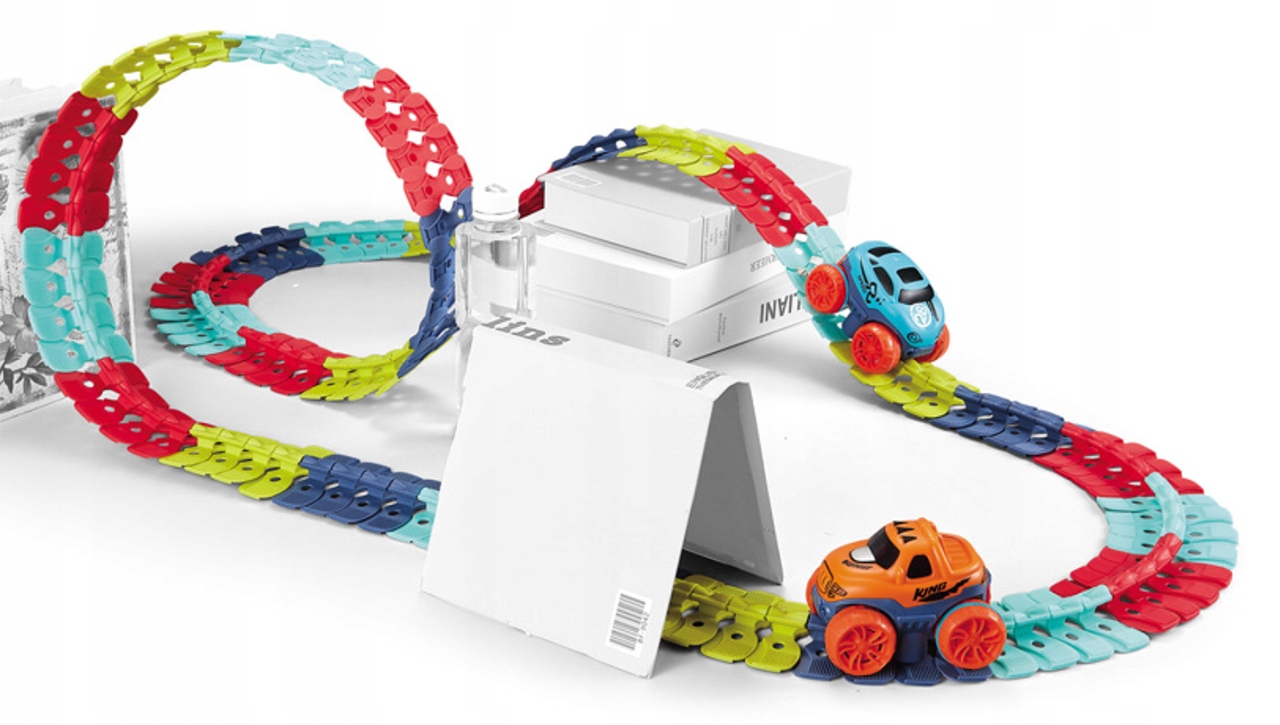 Большая гоночная трасса, состоящая из 138 разноцветных дорожных элементов, которые можно легко собирать и разбирать. Форма дорожки зависит только от вашей фантазии!