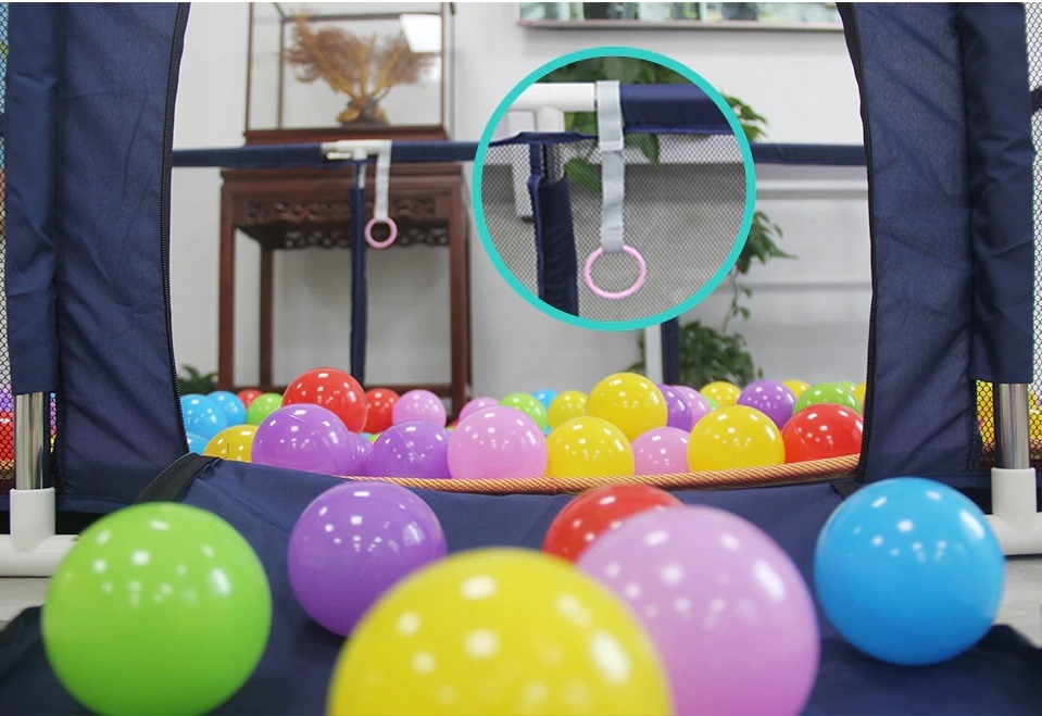 - Также НОВИНКИ — ремни с кольцами, прикрепленные в разных местах манежа, к которым мы можем прикрепить любимые игрушки наших детей или также можно стоять и держать для безопасности (3 шт.).
