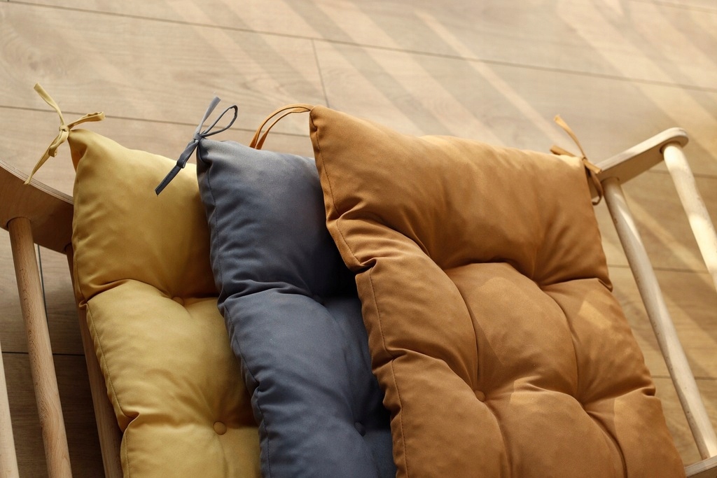 Подушки оснащены шнурками для удобного крепления к качалке, скамейке или стулу. Кроме того, они являются отличной защитой от перемещения товара.