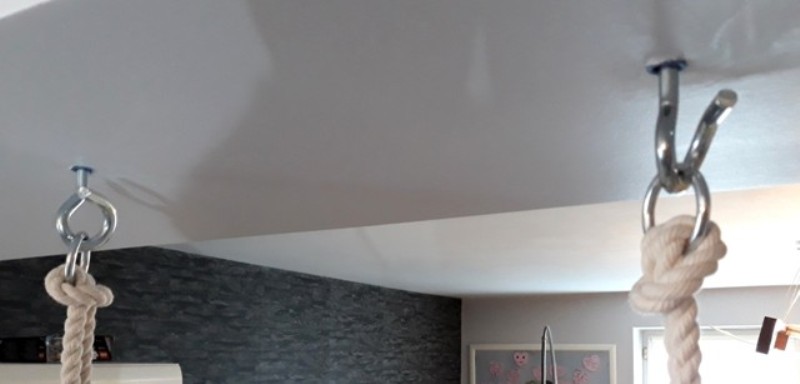 Дополнительным преимуществом материала является качество чистки, ограничивающего поглощение воды. Каждая пролитая жидкость образуется в капельках и не проникает в внутреннюю часть ткани. Когда ткань испачкается, все, что вам нужно сделать, это свести ее аккуратно. Качание установлено на прочном хлопковом Fi 10 канатах, которые выдерживают нагрузку примерно до 25 кг. Веревки длиной 8 м, что идеально соответствует 2,5 -метровой высокой комнате
