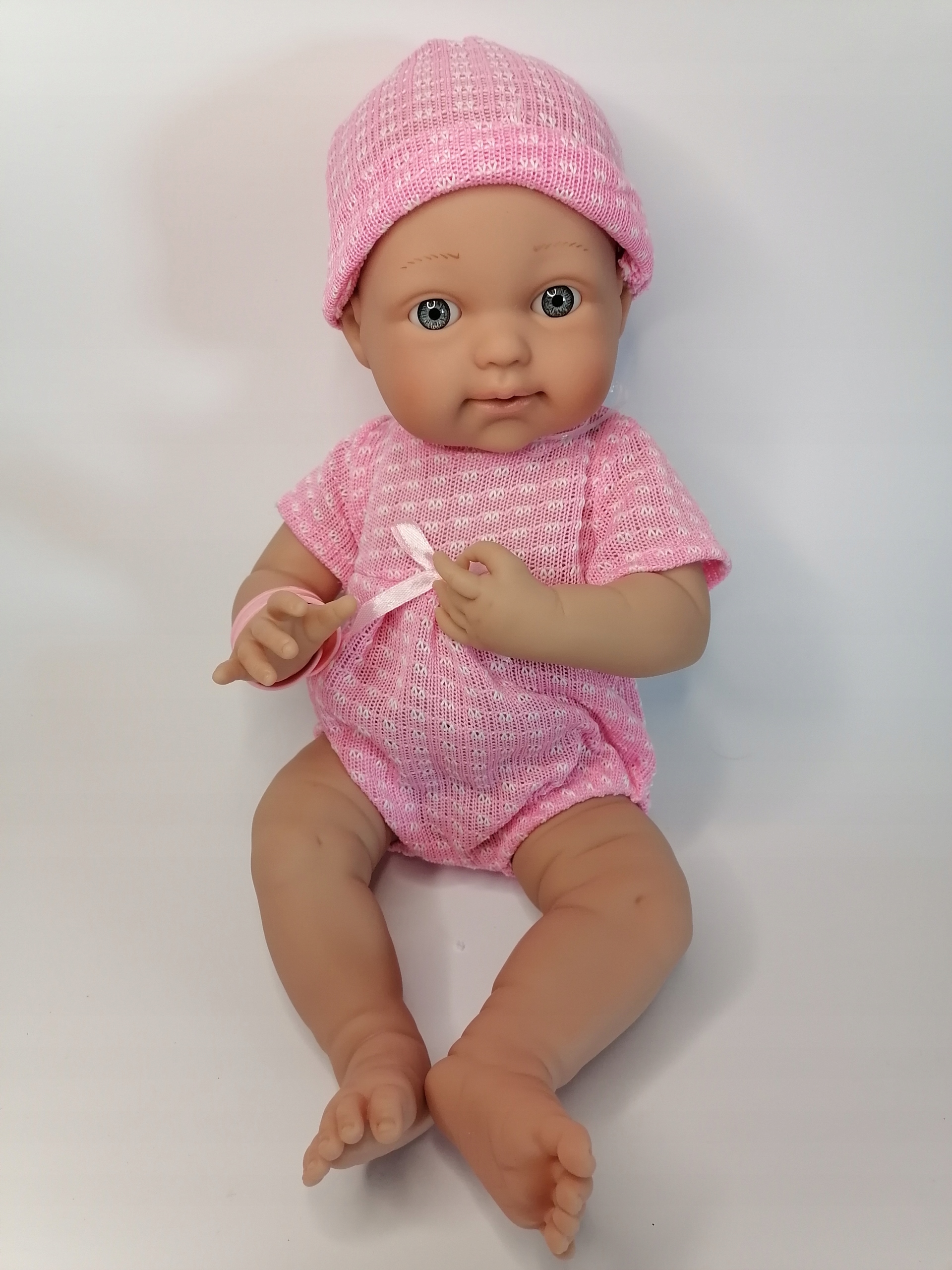 Кукла прекрасно имитирует настоящего малыша - глазки, личико, пальчики на руках и ногах очень реалистичные, что непременно побудит вас поиграть с малышкой. Она приятна на ощупь и аккуратно изготовлена из качественных материалов.Кукла одета в красивый комплект, тщательно отделана. В комплект также входит шапка. Ребенка можно купать, ведь он полностью из резины.