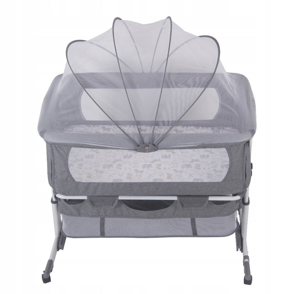 Подходящий возраст: 0-36 месяцев, кроватка с функцией подъема, под ней имеется сумка для детских вещей.