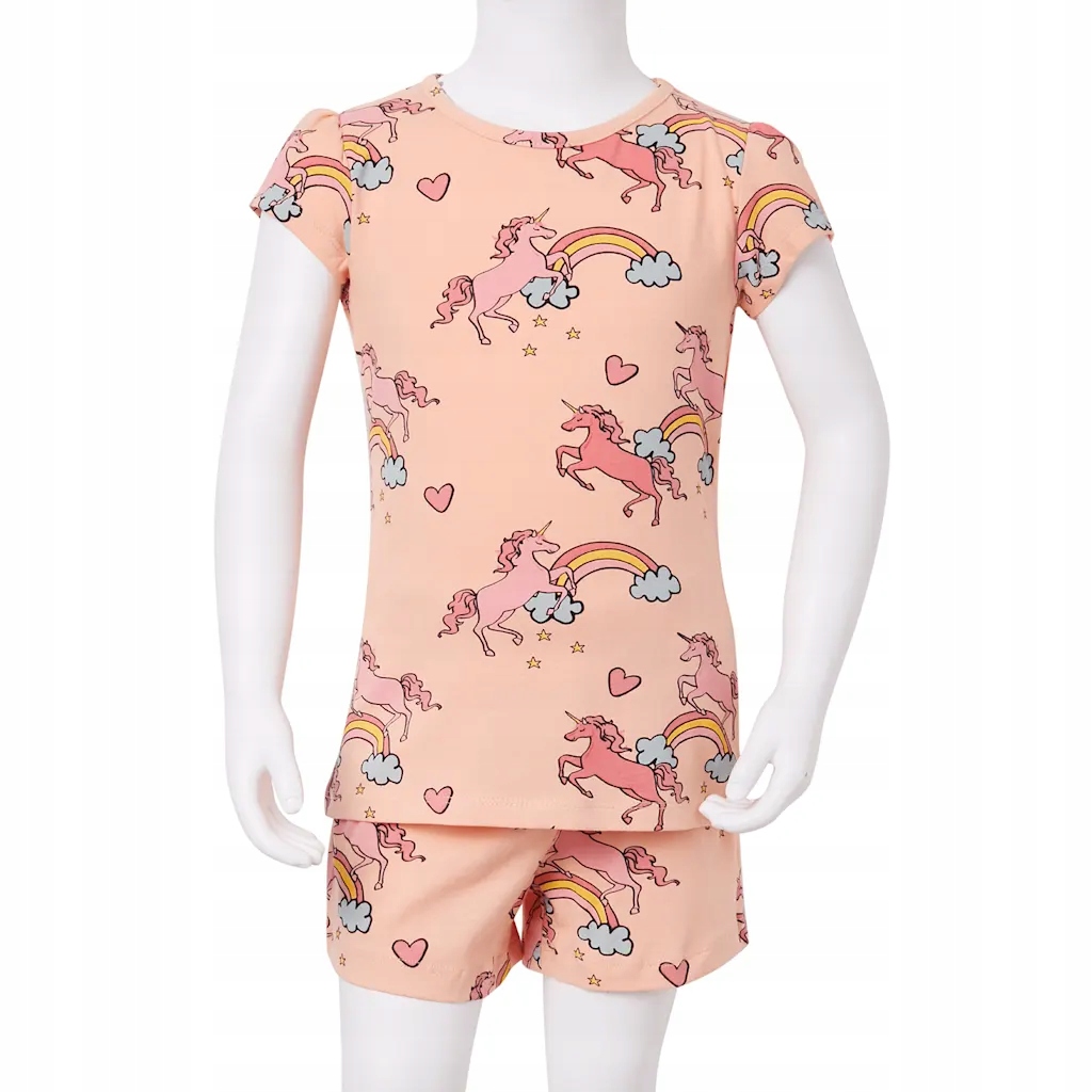 Эти детские пижамы с короткими рукавами имеют круглый вырез горловины, эластичный пояс и обычный крой. Он украшен узором из единорогов и радуг в окружении сердечек, звезд и облаков. Пижама изготовлена из мягкого материала, состоящего из 95% хлопка и 5% эластана, что обеспечивает больший комфорт и воздухопроницаемость.