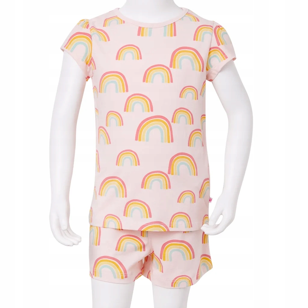 Эти детские пижамы с короткими рукавами имеют круглый вырез горловины, эластичную талию и обычный крой. Он украшен радужным узором по всей поверхности. Пижама изготовлена из мягкого материала, состоящего из 95% хлопка и 5% эластана, что обеспечивает больший комфорт и воздухопроницаемость.
