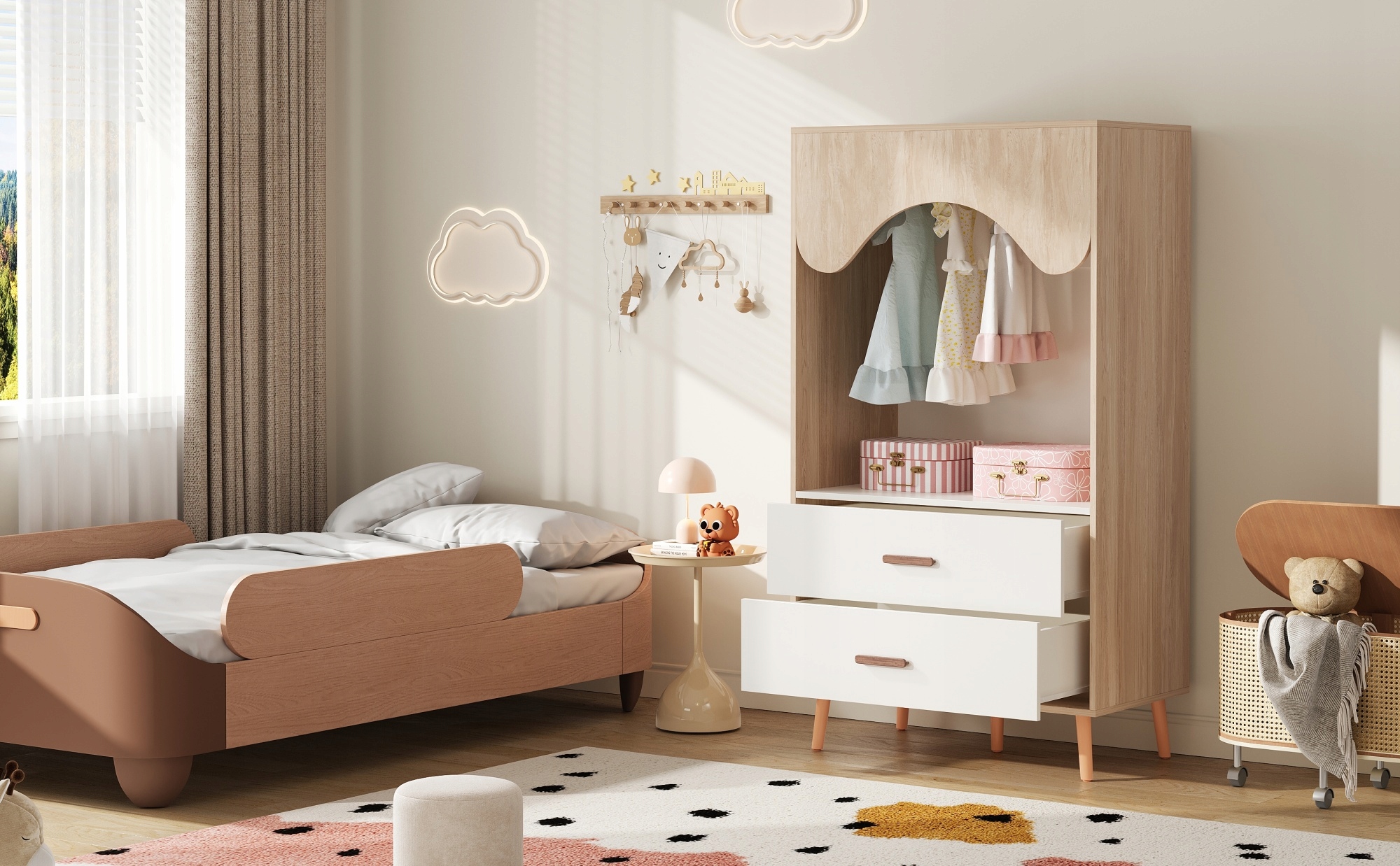 ✅[Экономия места] Размер идеально подходит для детской комнаты (для развешивания одежды) или спальни (для хранения повседневной одежды). Открытый дизайн сокращает время поиска и облегчает интеграцию даже в небольших помещениях.