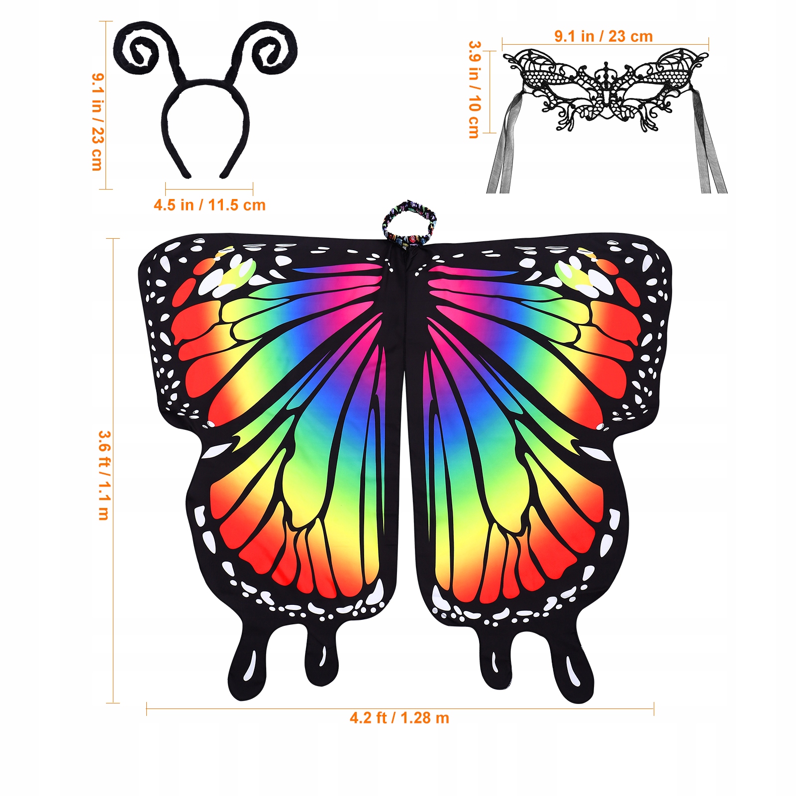 ✅Это детский набор: накидка в форме крыльев бабочки, кружевная маска и повязка на голову, изготовленные из отборного полиэстера высшего качества, легкие и портативные, безопасные и без запаха.