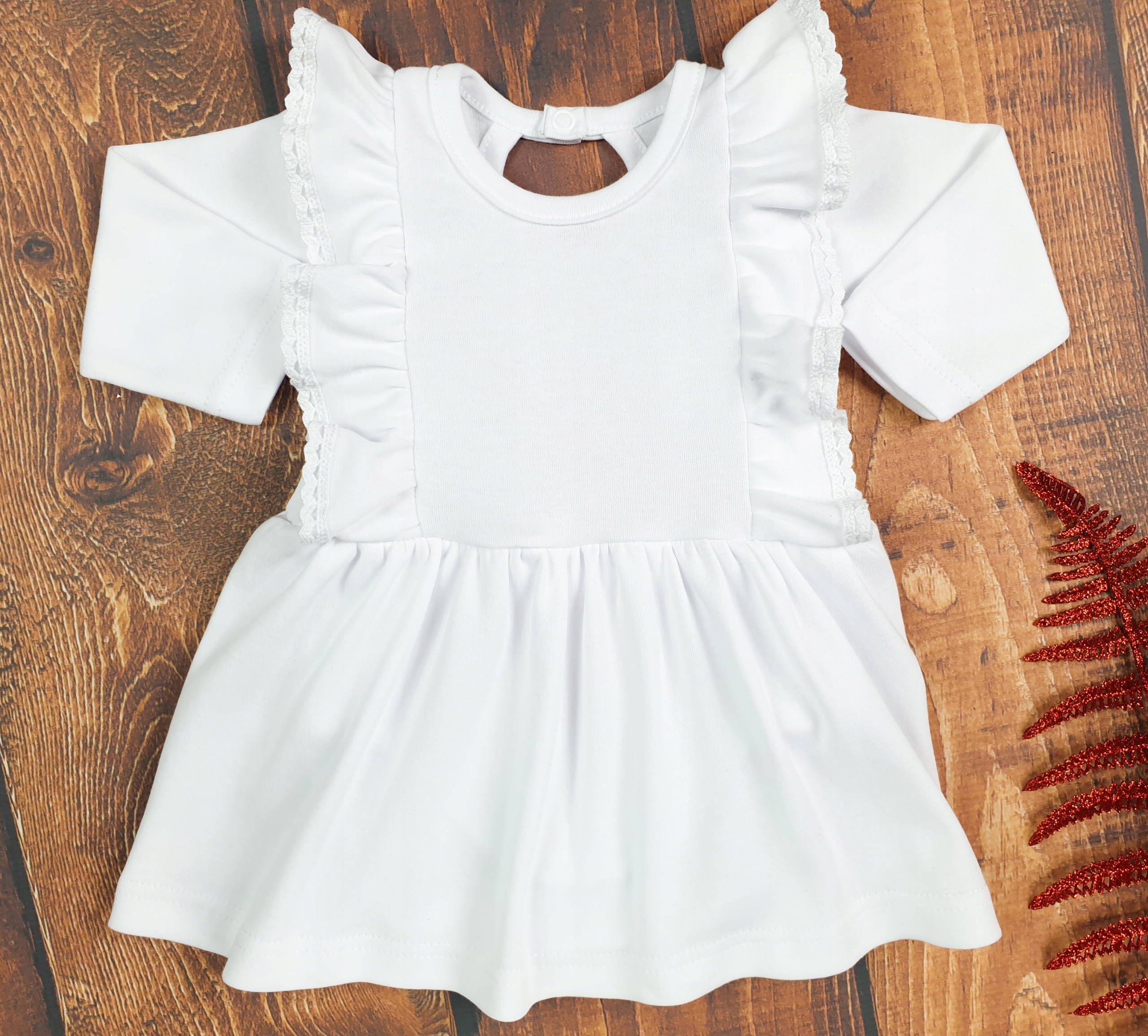 Детское боди-платье. С кружевом белого цвета, размер 68.